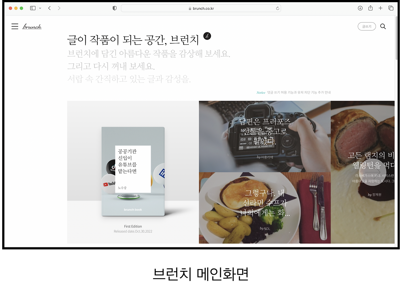 작가로서 브런치를 이용하고 있으면 쓰는 사람을 세심하게 고려했음을 쉽게 눈치챌 수 있다. 네이버 블로그와 같은 자유로운 꾸미기 요소를 제거하고 오로지 쓰기에 집중할 수 있게끔 UI(사용자 인터페이스)를 간결하게 만들었다. 흰 바탕에 기본 글씨체, 직관적이고 필수적인 쓰기 도구들, 언제 어디서든 쓰기를 시작할 수 있게 만드는 간편한 접근성이 눈에 띄었다. 사람들은 너도나도 브런치의 작가가 되기 위해 승인 신청을 보냈고 '브런치 작가'는 일종의 명함의 역할을 맡아 퍼스널 브랜드 가치를 향상시키는 하나의 축이 되었다. 아무나 할 수 없다는 특별 대우, 작가라는 이름, 떠받들어지는 기분이 나쁘지 않았다.