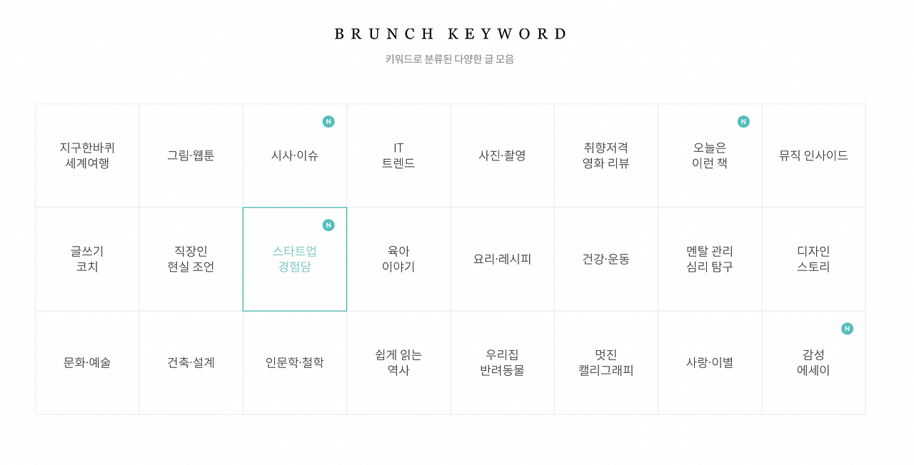 애초에 '좋은 글'은 모두에게 좋은 글일 수 없다. 잡지의 편집부가 지향하는 글의 모양, 철학 속에서 주관적인 좋은 글의 형상이 만들어진다. '좋은 글'이 만들어지기 위해서는 좋은 작가가 좋은 글을 쓰는 일 뿐만 아니라 그 글의 '좋음'을 정의해주는 편집자, 넓게는 독자가 반드시 필요하다. 브런치 작가는 5만 명이 넘어가고 브런치의 편집부(라는 게 존재한다면)가 매일매일 발행되는 글들을 전부 확인하여 큐레이션하는 것은 불가능해보인다. 차라리 분야마다 큐레이션을 담당하는 MD가 있으면 어떨까 싶다. 교보문고, 알라딘과 같은 대형 서점 직원들은 각자 분야를 따로따로 맡아서 관리한다. 브런치는 24개의 키워드만큼 분야가 나누어져 있고 분야로서 큐레이션을 제공하면 지금보다는 나은 사용자 경험을 예측할 수 있을 것이다. 하지만 막상 키워드 분야로 들어가보면 그 키워드에 적합한 글들이 아닌 경우가 더 많다.