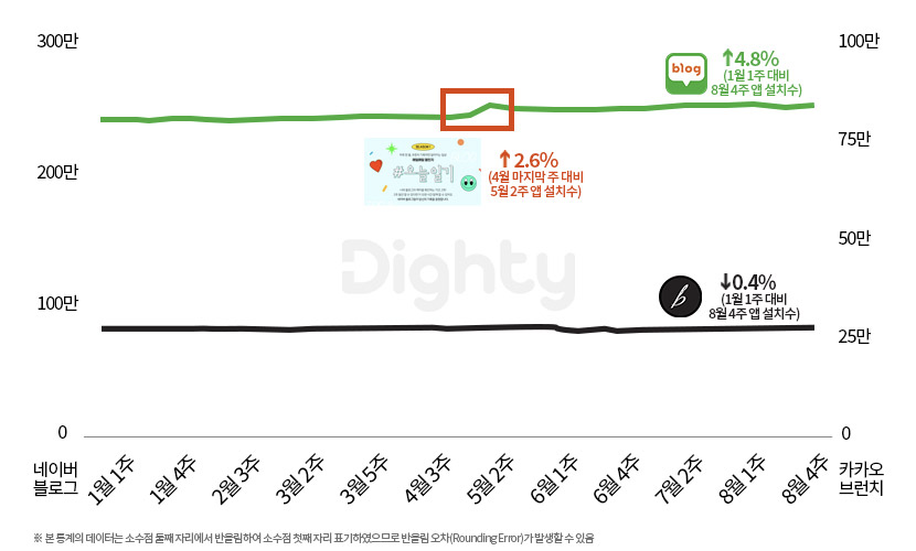 공식적으로 발표된 데이터 자료를 찾지는 못했지만 일부 통계 사이트나 기사를 통해 대략적으로 브런치의 사용률을 파악해볼 수는 있었다.