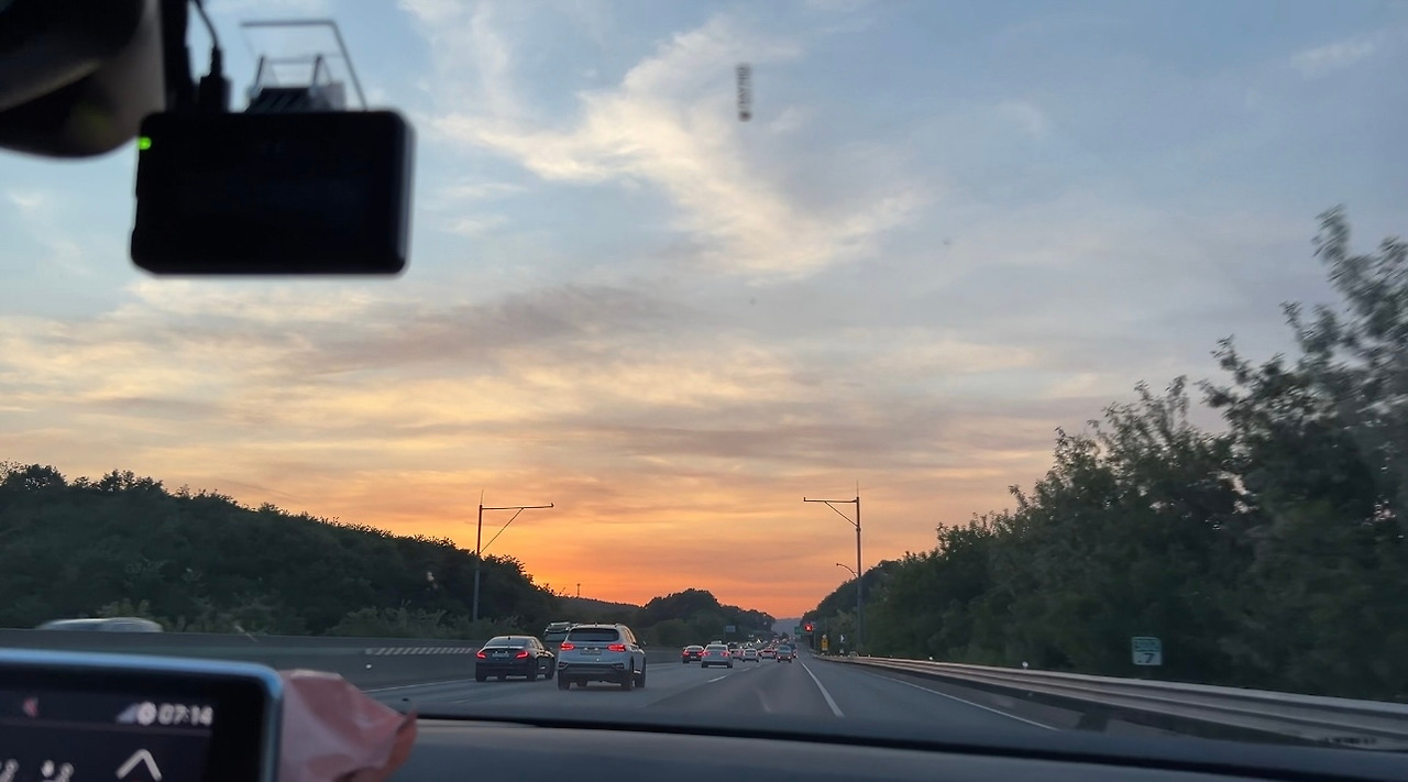 덕분에 우리는 서로에게 살짝 티가 날 만큼 지쳤고, 돌아가는 길에는 그만큼 조용해졌다. 중간에 안성을 지나면서는 살짝 들어온 축사의 냄새를 털어내겠다고, 아무 생각 없이 창문을 활짝 열었다가 오히려 냄새 폭탄을 한껏 맞아버렸다. 연두의 흔적을 묻힌 채 뒷좌석에 놓인 내 티셔츠의 존재도 잊고서, 우리는 깔깔 웃었다. 그러다 어느새 시야를 물들인 어스레한 노을빛에 할 말을 잊고 멍하니 달리기도 했다.