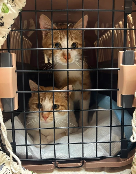 그런데 격리장을 받고서 울진이를 구조하신 쉼터장님께 들으니 두 아이가 서로, 아니 정확히는 울이가 진이를 너무 좋아해서 떨어뜨려놓으면 많이 울 거라는 거다. 일단 병원에서 나와 임보처로 돌아와 이동장을 열었더니 비좁은 와중에 참 나란하게도 앉아있었다. 산불에 터전도 잃고 먼 타지로 구조되어, 쉼터로 병원으로 옮겨다니는 동안에 둘이 얼마나 의지했을지, 그 모양만으로 짐작이 갔다.