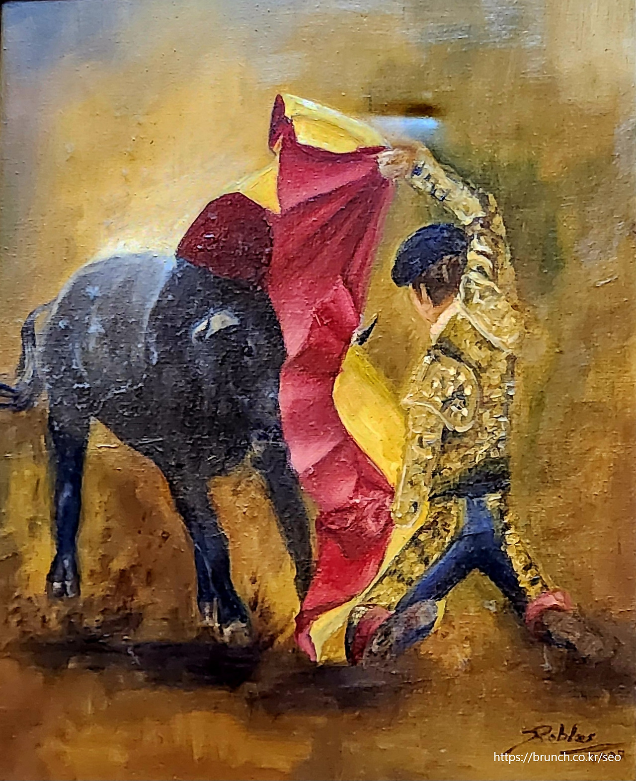 지금은 동물보호단체들의 반대운동으로 스페인에서도 많은 도시들에서 투우가 금지되어 투우장은 대형 쇼핑몰로 리모델링되거나 콘서트장으로 활용되고 박물관으로 바뀌어서 스페인 사람들조차 실제로 투우를 보기 힘들어졌지만 난 운 좋게도 아니 어쩌면 안타깝게도 투우를 직접 볼 수 있는 기회를 두 번 가졌었다. 끔찍했다. 그건 잔인무도한 도살이었고 난 피를 쏟으며 죽어가는 투우의 최후에 끝내 눈을 감을 수 밖에 없었다.