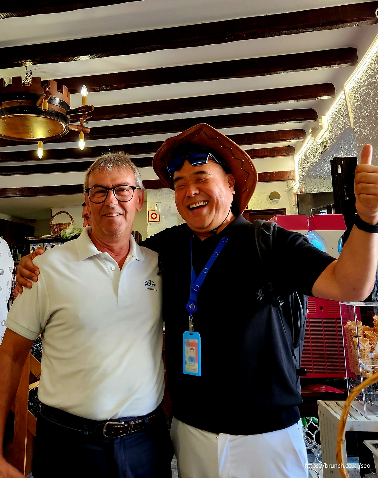 뼛속까지 까딸루냐 사람인 미헬은 내가 버스 앞에 게양해둔 태극기와 스페인기, EU기를 보며 까딸루냐 벗어날 때까지만이라도 스페인기를 내려줄 수 없겠냐고 정중하게 요청했다. 물론 난 기꺼이 그렇게 따라주었다. 마드리드 중앙정부로부터 독립하고 싶어하는 성향이 강한 까딸루냐 사람다운 요청이었기 때문이다. 그러나 그는 자기 일에 있어서는 프로 중의 프로였다. 주정차 규정이 까다롭고 불편한 곳들이 많아서 고객들이 더 많이 걷고 힘들 수 있었는데 그는 센스있게 목적지에 최대한 가까이 세워주고 또 일정을 마치면 시간에 딱 맞게 나타나 우리를 다음 목적지까지 데려다 주었다. 그렇게 해서 절약된 시간은 고객들에게 더 많은 자유와 여유로 돌아갔음은 물론이다.