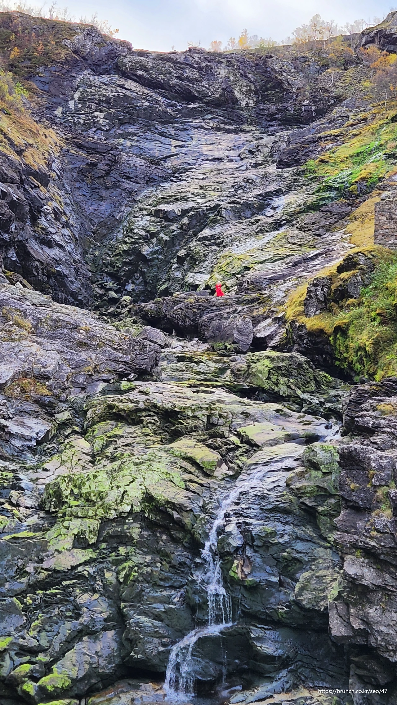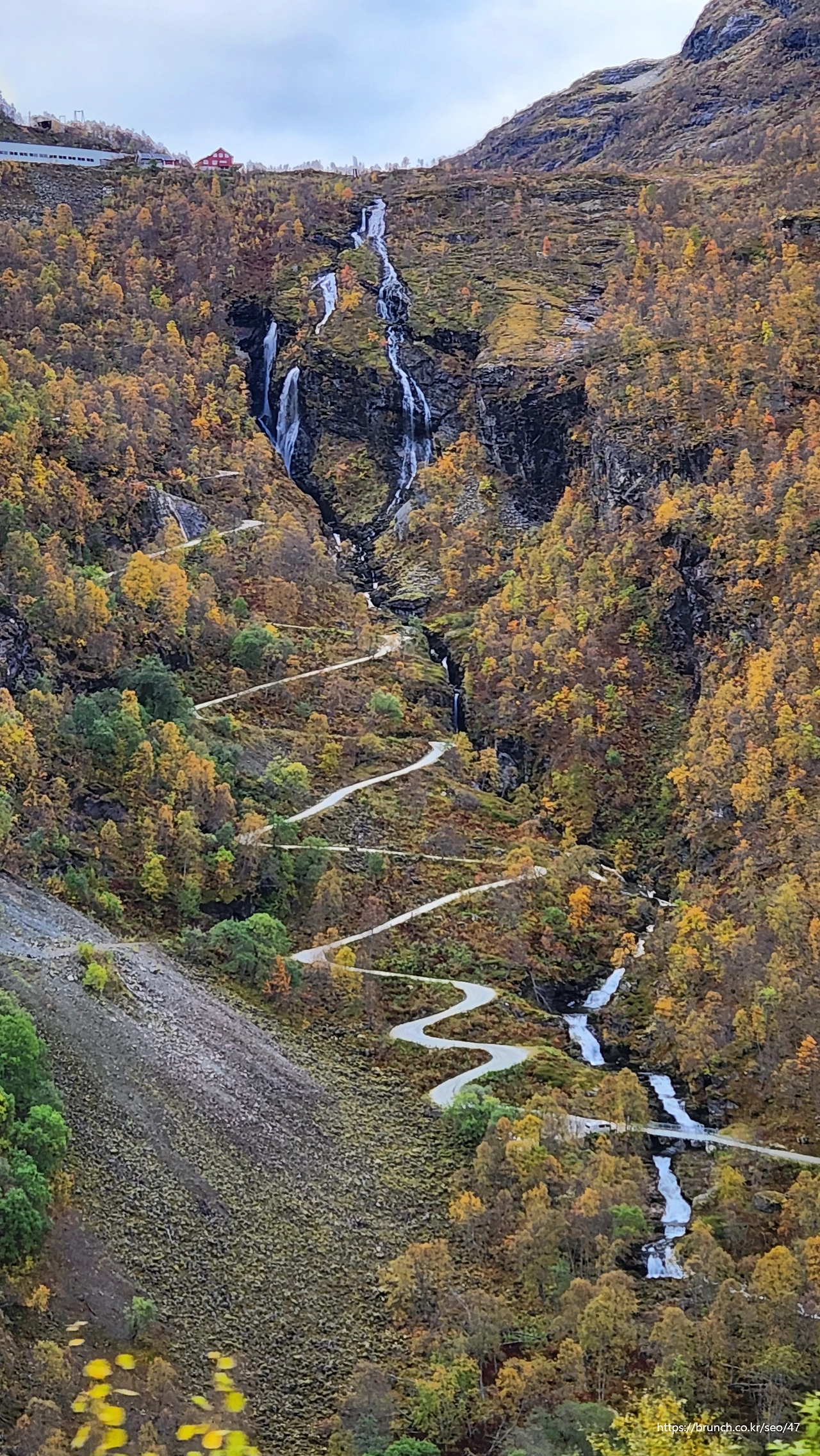 해발 900m도 안되는 정상에 있는 뮈르달 마을까지 아주 느린 속도로 천천히 올라간다. 연일 비가 내렸다는데도 폭포들의 물줄기가 쫄쫄거리는 수준이다.