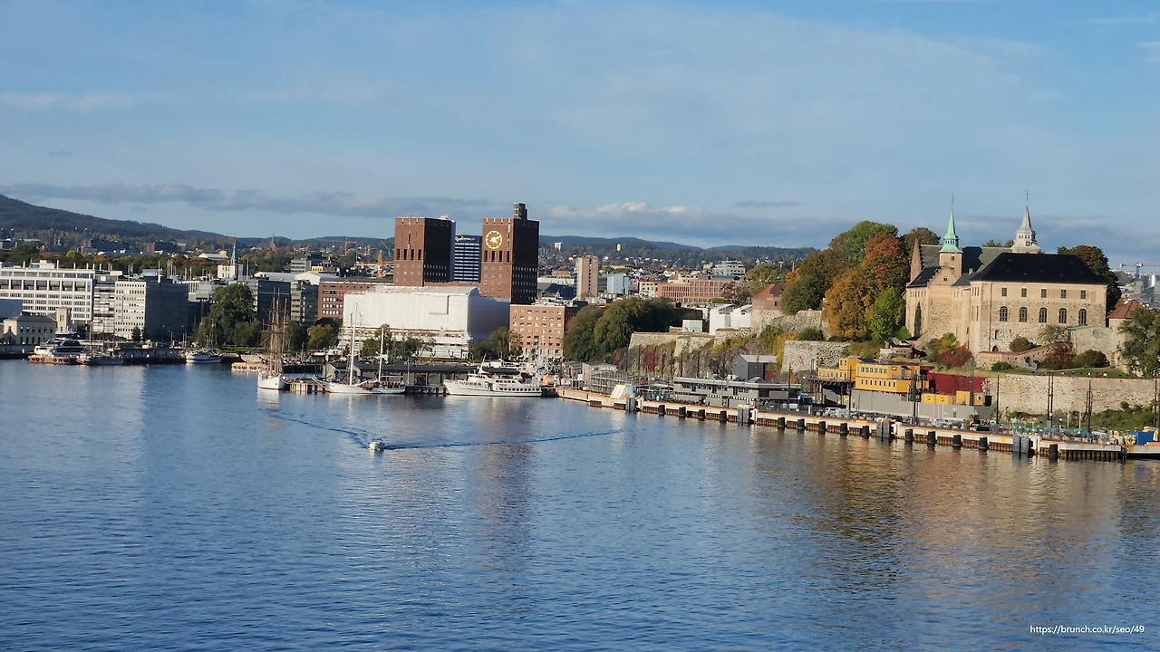 그렇가 잘 살면서도 그렇게 잘 사는 것처럼 보이지 않는 소박한 노르웨이의 수도 오슬로를 떠나며 해상에서 한 컷 담아본다.