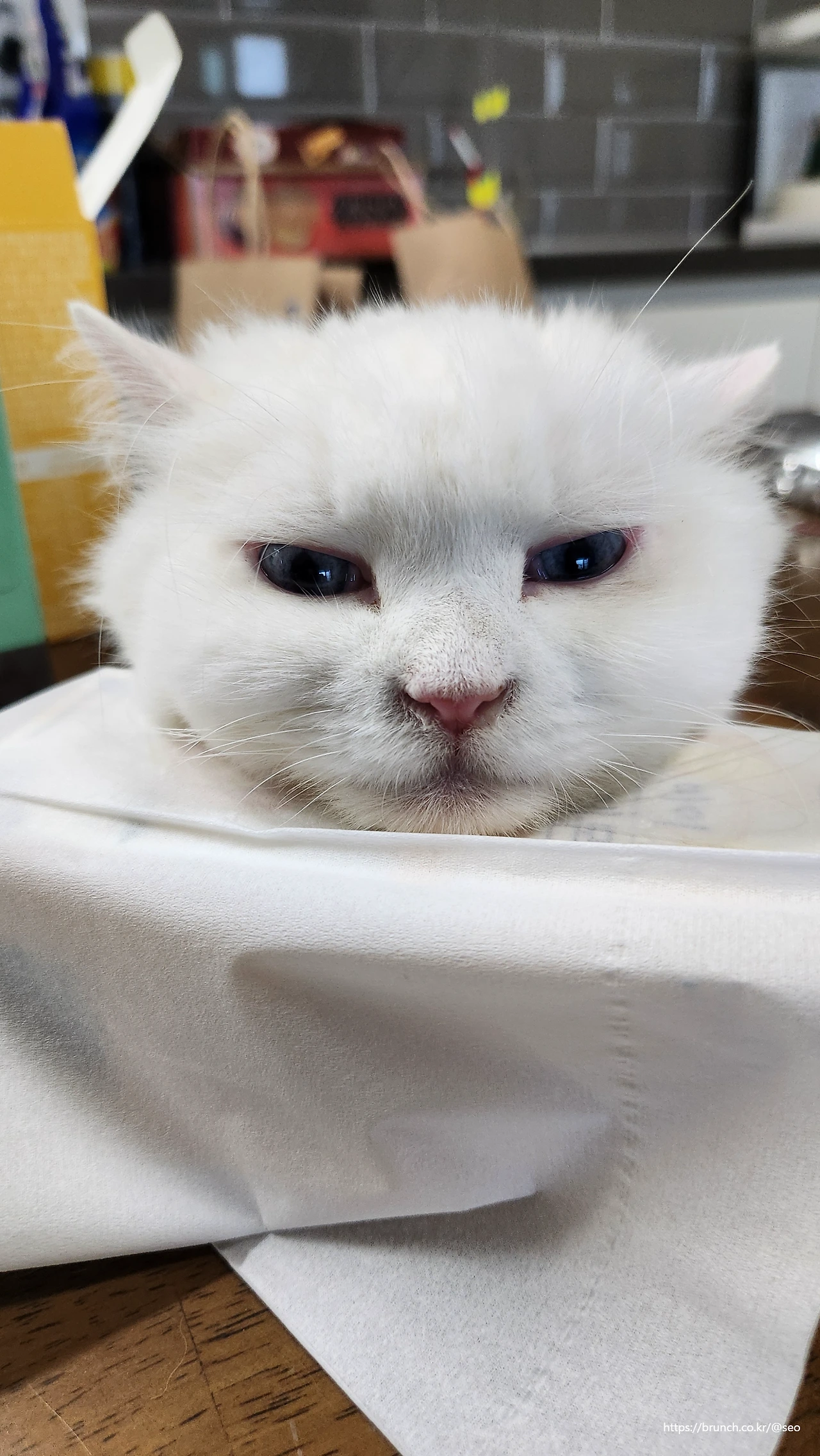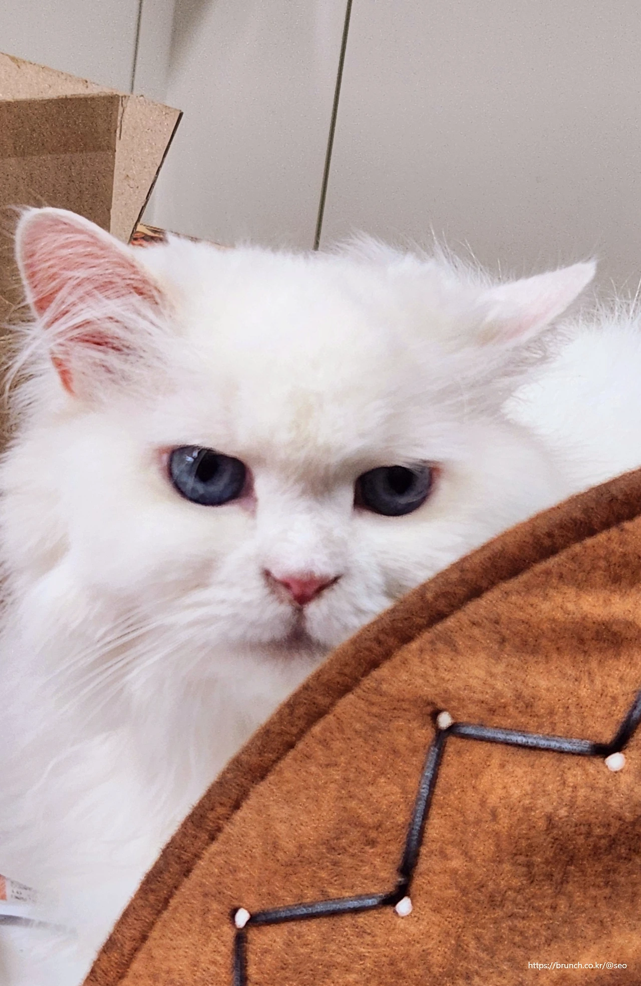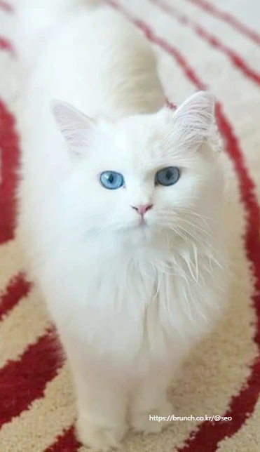 우리집 막내 세븐인 우아한 털빨을 자랑하는 터키쉬 앙고라 종이다. 머리부터 꼬리 끝까지 복실복실한 털이 가득한 이 우아냥이는 하루종일 꽃단장(그루밍)하는데 많은 시간을 쓴다. 그러니 정작 자기가 얼마나 우와~하게 아름다운지를 모르면서도 막가내로 들이대는 집요함과 꿋꿋하게 마이웨이하는 야생성으로 고양이 알러지가 있는 아내와 딸의 마음까지 차지해버렸다. 나는 지금도 가끔 녀석이 푸른 하늘 빛 눈동자로 나를 바라볼 때면 심쿵할 때가 있다.