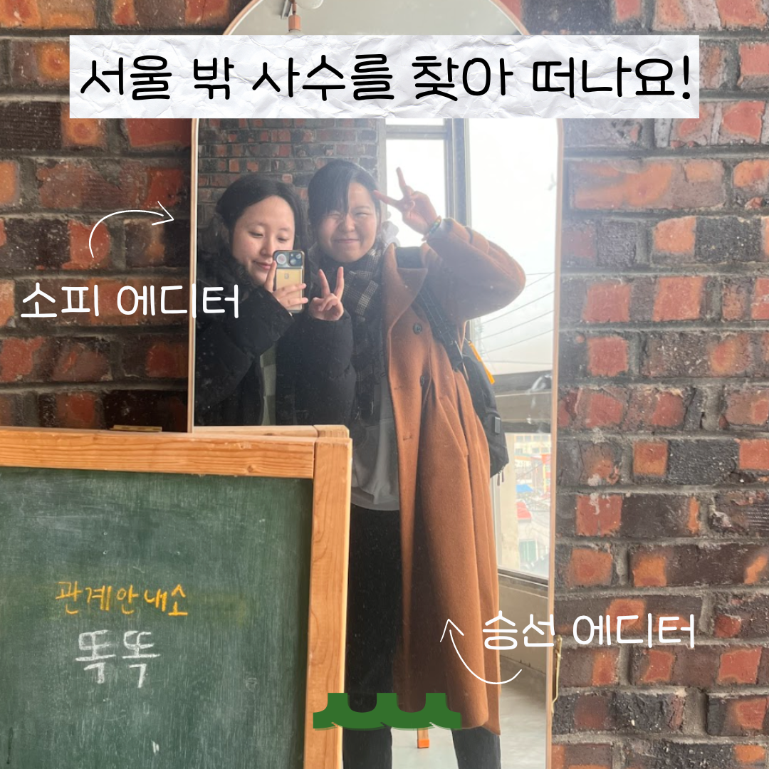 비슷한 고민을 가진 사람들이 이어지고, 또 다른 누군가의 서울 밖 서사가 시작되도록 하는 콘텐츠요. 앞으로 브런치와 인스타그램에서 선보일 예정이에요. 다음에 소개될 이야기는 서사수 에디터 승선과 소피의 셀프 인터뷰입니다. 인터뷰를 읽어보고 저희에 대해 더욱 궁금하시다면 앞으로의 행보도 지켜봐주세요 :)