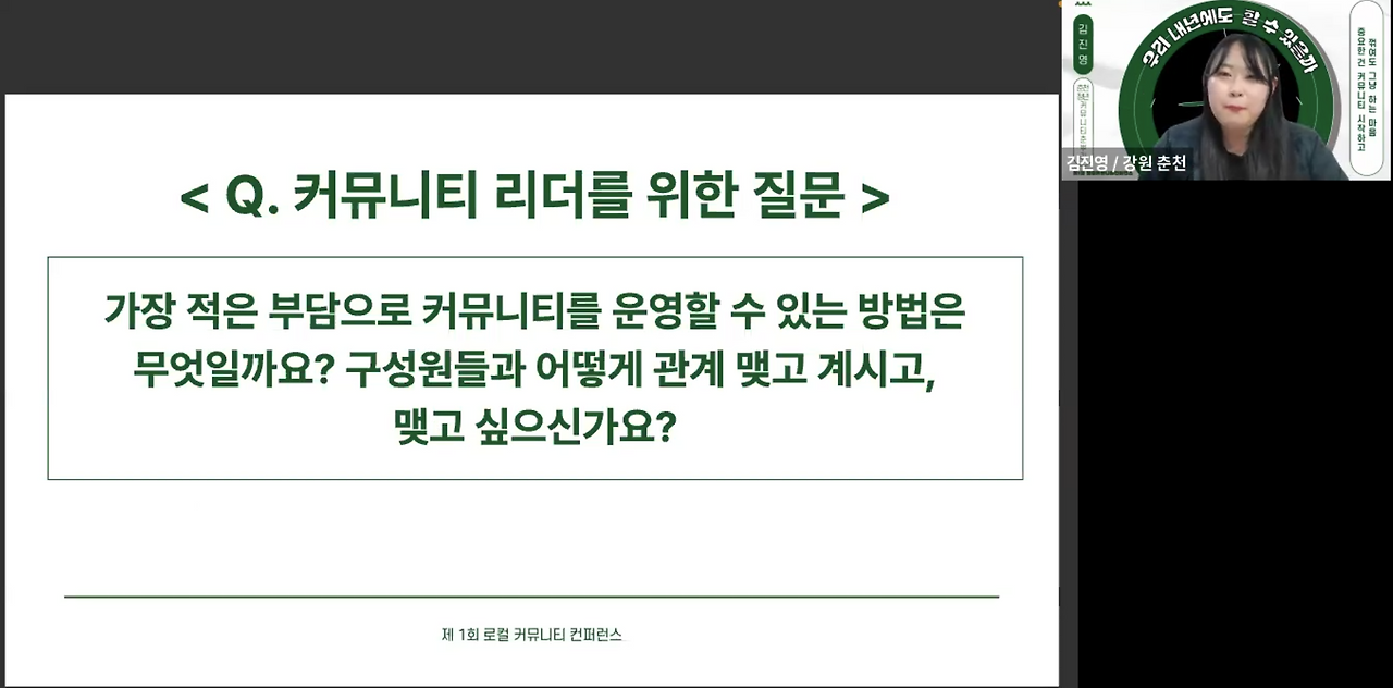 "확실히 같은 운영자의 입장에서 겹치는 고민과 공감할 수 있는 부분이 많았습니다. 타 지역 커뮤니티는 어떤 기반으로, 어떤 프로젝트를 운영하시는지 공유할 수 있었던 점이 인상적이었습니다 :)"