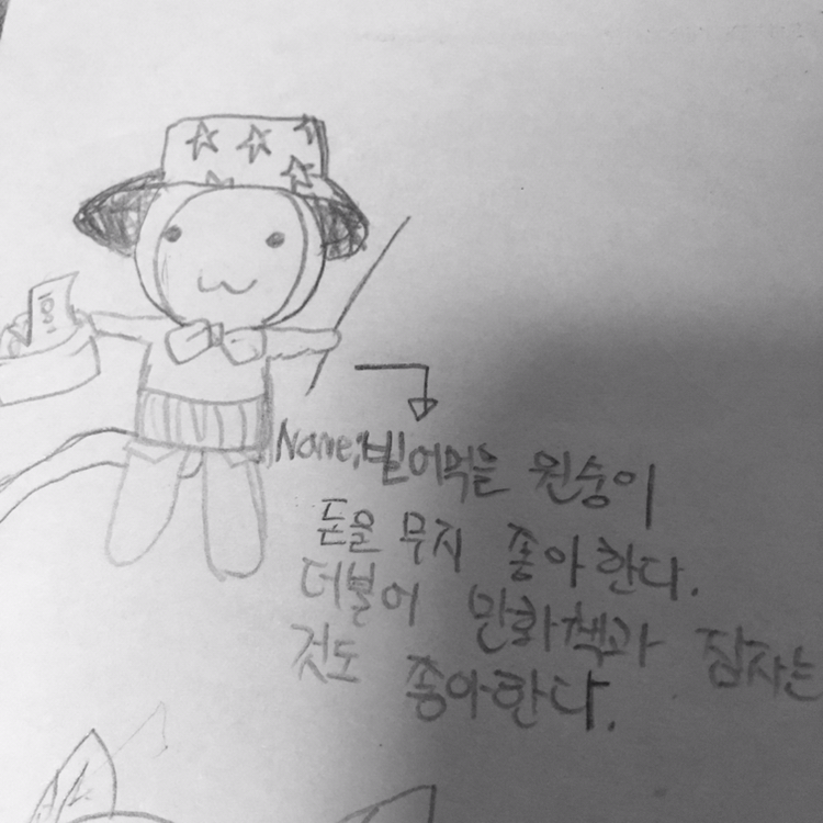 초등학생 부터 중학생때까지는 만화 그림 그리는거에 빠져 매일 연습장에 만화만 그렸다. 내가 만든 캐릭터와 스토리로 연습장을 채워나가는 일이 참 재미있었고 내가 그린 그림들을 친구들에게 보여주는것 역시 즐거웠다.