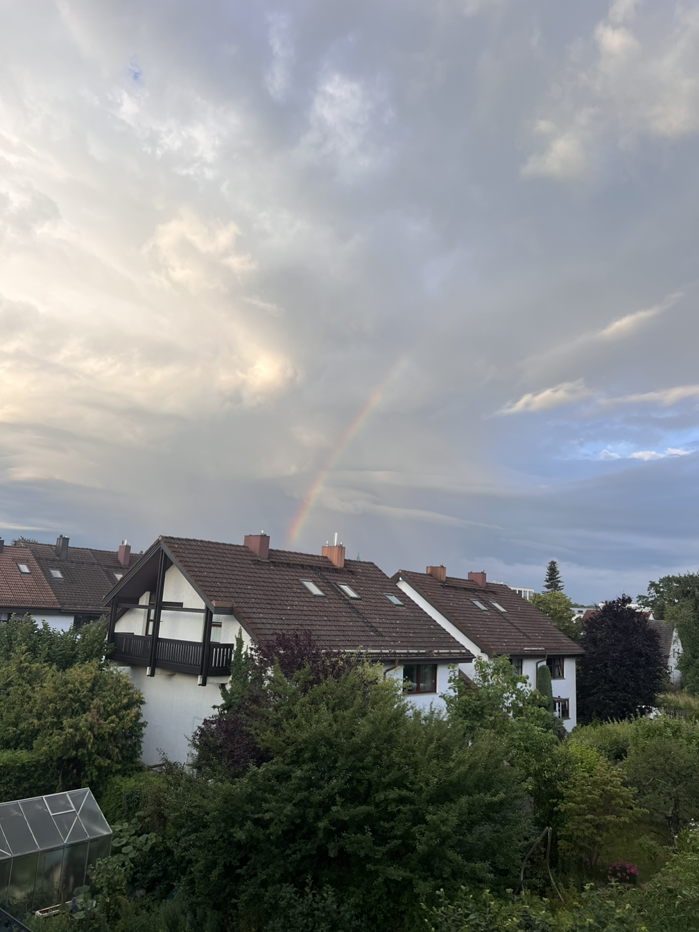 아침에 일어나 어제저녁에 제대로 살펴보지 못했던 뮌헨에 집을 둘러봤다. 신랑이 한 달 동안 살면서 비치해 둔 정리바구니, 샤워실에 있는 세탁세제 빨래를 해놓은 흔적들을 살펴봤다. 신랑을 뮌헨에 보내고 살림을 해본 적 없는 신랑을 걱정을 했는데 나름 잘 적응해 가면서 잘 지내고 있는 것 같아서 안심이 됐다. 반면 한 달이라는 시간 동안 혼자서 애쓰고 긴장한 시간들을 생각하니 마음이 아팠다. 케리어를 정리하고 싶었지만 다른 식구들이 깰까 봐 조용히 창문을 열었다. 뮌헨 도착하면 가장 보고 싶었던 건 뮌헨의 아침 하늘이었다. 말로만 듣던 유럽의 파란 하늘이 보고 싶었다. 신랑이 있는 집은 다락방 느낌이라 창문이 지붕에 위치하고 있었다. 그래서 창문을 여니 바로 빨간색 지붕이 보였다. 이 또한 유럽감성이라 느끼니 기분이 좋았다. 인테리어는 한국의 원룸과 다르지 않았다. 하지만 창문 밖에 보이는 풍경은 한국과 달랐다. 3층에 위치한 신랑 집 덕분에 나는 높은 곳에서 동네를 바라볼 수 있었다. 이제 막 해가 뜨고 있었다. 해가 점점 높이 뜨면서 지붕 하나하나에 빛을 내었다. 어두워서 잘 보이지 않았던 동네가 눈에 들어왔다. 2~3층으로 이루어진 단독 주택들이 보였다. 여긴 주택들로만 이루어져 있는 게머링이라는 지역이었다. 아주 조용한 동네였다. 이곳이 내가 한 달간 지낼 곳이구나. 신랑과 아이가 깨면 동네를 구경해 볼 생각을 하니 설레었다. 지금도 가끔 아침에 눈을 뜨면 뮌헨에 도착하고 다음날 아침을 맞이한 첫날 그날의 기억이 떠오른다. 천천히 떠오르던 붉은 해와 따뜻한 빛이 지붕을 감쌀 때의 느낌 말이다. 정말 따뜻하고 뮌헨의 시작을 알리는 설렘이 있는 한순간이었다. 그리고 내가 이날을 기억하고 있는 이유는 그날 아침에 나를 반기는 일곱 색깔 무지개였다. 내가 뮌헨에 도착했을 때 비가 오고 있었다. 내가 아침에 깨어나기 전까지 비가왔왔다. 하지만 거짓말처럼 비가 그쳤고 해가 났다. 밝은 해와 파란 하늘과 함께 일곱 색깔 무지개가 보였다. 정말 아름 다운 무지개였다. 높은 아파트가 없어서였는지 더 크게 보였다. 이날 이후로도 나는 자주 무지개를 만났다. 어느 순간 비가 오고 그치는 변덕스러운 유럽의 날씨 덕분이었다. 하지만 변덕스러워서 더 좋았다. 우리 가족에게 더 좋은 추억을 많이 만들어 준 뮌헨의 날씨였다. 한국과 다른 날씨도 좋았고, 그 변화에 적응해 나가는 나도 좋았다. 이제 뮌헨에서 지내는 1일 차가 시작되고 있었다. 나는 여기에 30일간 머물렀다. 긴 시간이라고 생각했지만 짧은 시간이었다. 한 달이었지만, 새로운 나라에서 시작하는 아침은 모든 것이 다 설레고 기분이 좋았다. 기대하지 않았지만 내 눈앞에 펼쳐진 일곱 색깔 무지개처럼 뮌헨에 있으면서 어떤 일들이 펼쳐 질지 몰랐다. 그렇기에 오랜만에 느끼는 이 감정에 아들레날린이 샘솟는 것 같았다. 내일, 모레, 그리고 또 내일. 하루하루가 기대되고 소중 했던 뮌헨의 한 달이었다.