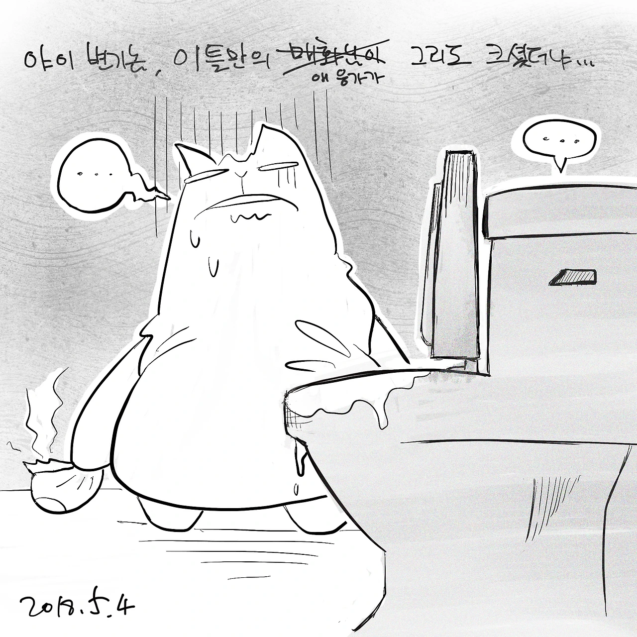 애 똥 치우다가 변기가 막히다. 이틀만의 거대 매화님이시긴 했는데... 우리 애가 좀 잘 먹긴 하지만 말야 그래도 너 그러는 거 아니야 변기놈아...