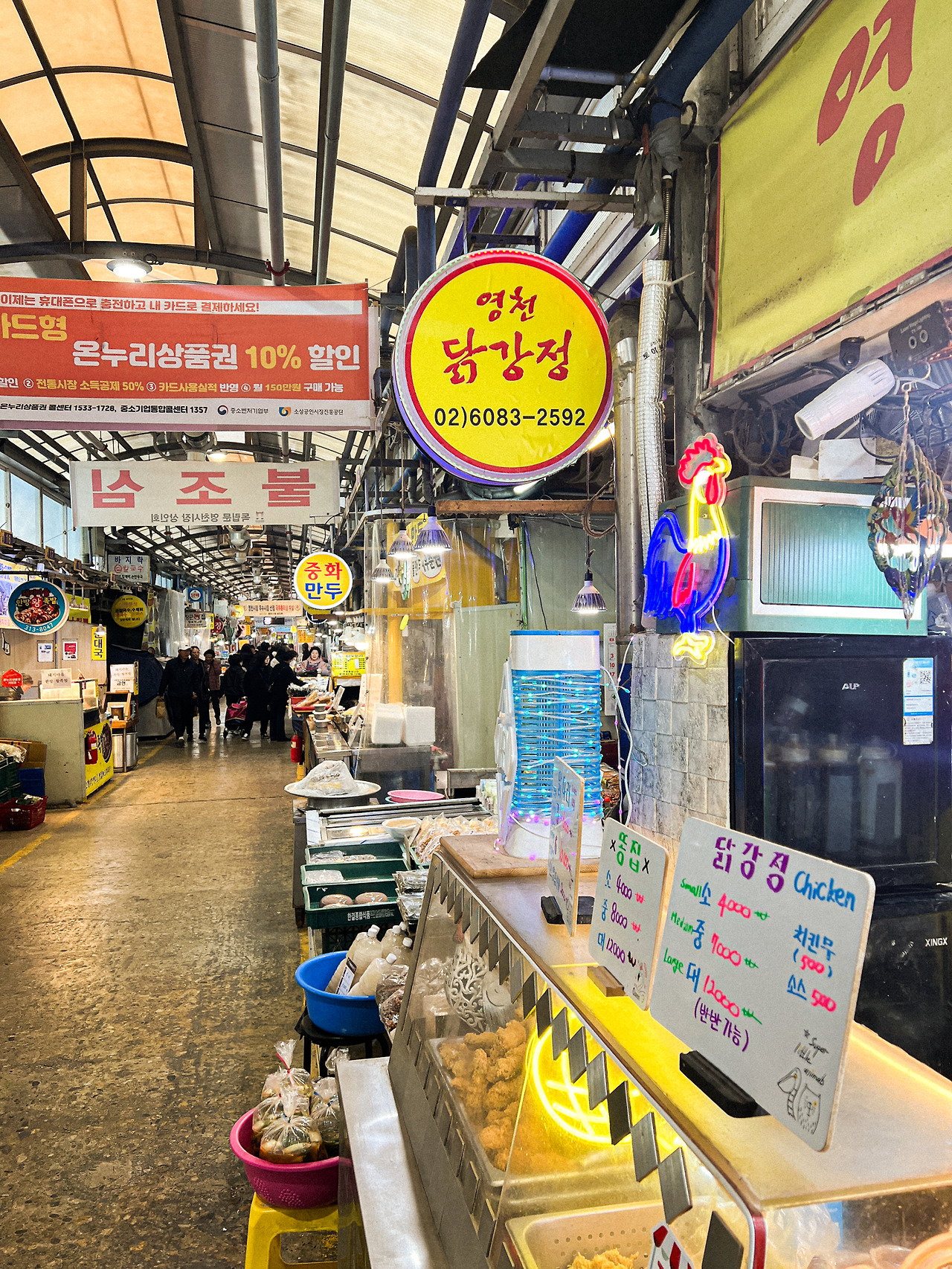 떠난 물고기에 대한 기억을 떨쳐내며 나는 애정하는 공간이 있는 영천시장의 한 카페로 향했다. 그 카페에 도착하자마자 그곳의 사장이자, 연인에게 조금 전 경험했던 향기로웠던 치킨과의 추억을 공유했다. 내 얼굴에 ‘치킨 먹고 싶다’라고 쓰여있었는지, 나의 마음을 가장 잘 아는 그녀는 닭강정이라도 먹자며 내 팔을 끌어 영천시장으로 향했다. 시장 통로를 한참으로 걸어가 한 닭강정 집의 간판이 저 멀리 보이기 시작했다. 그리고 그 순간, 바로 전에 치킨의 향이 저 멀리서 내게 손을 흔들었다.
