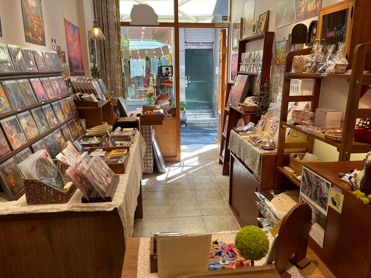 저희가 아트숍 자리를 알아보고 있을 땐 그 당시 살고 있던 홍제동 인근부터 연희, 연남 상권을 둘러봤어요. 그중에서도 이대를 선택했던 이유는 작가님 그림의 소비자층이 20대 여성분들이 많다 보니 여대가 있는 이대 상권이 적합하다고 판단했기 때문이에요. 그리고 저희가 이대에서 본 매물에 권리금이 없기도 했어요. 처음 오픈하는 가게이기에 이 점이 매리트이기도 했어요.