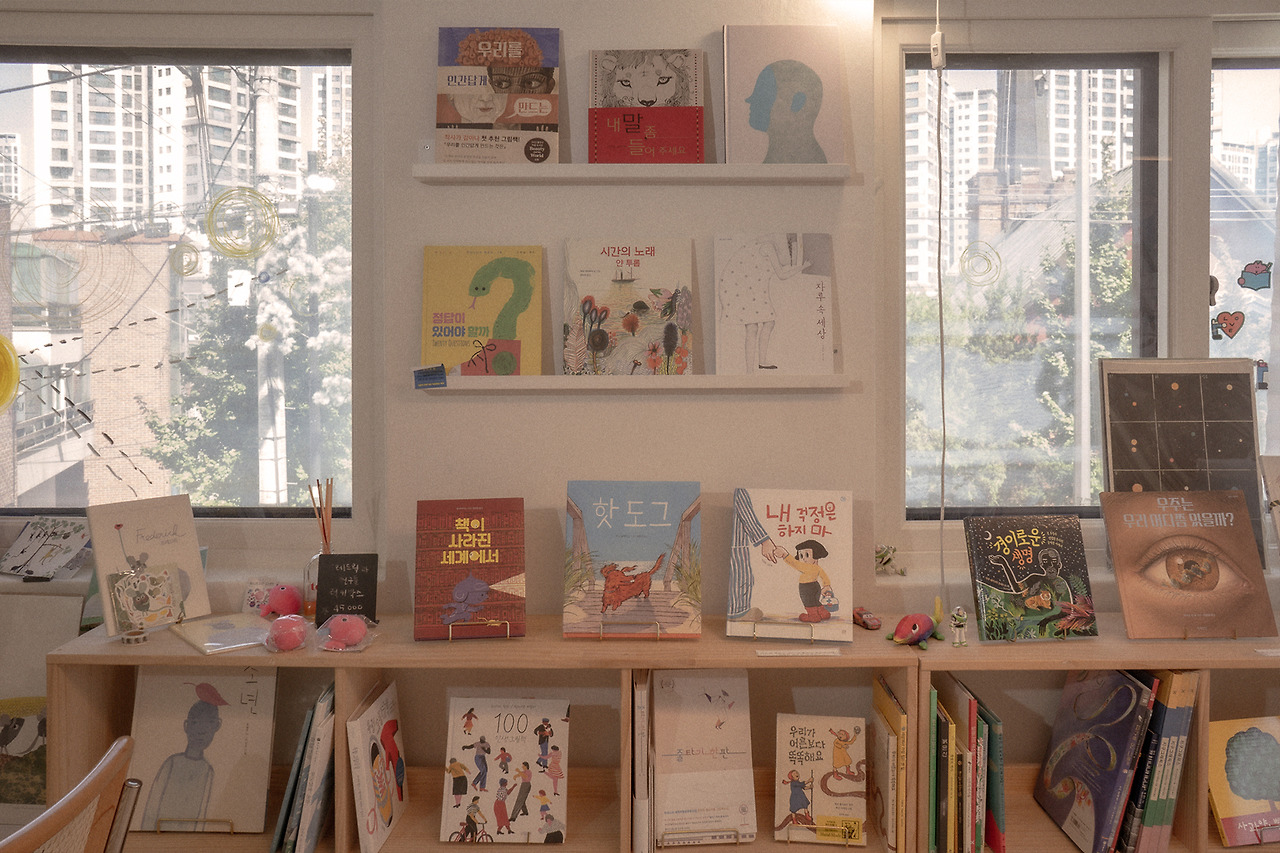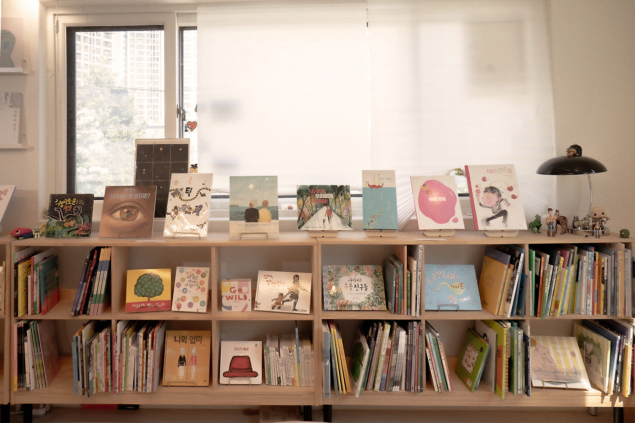 사장님께서는 출판사와 관련된 업무 경험이 없었지만, 책방을 운영하는 일이 너무 즐거우셨다고 해요. 아이를 어린이집에 보내놓고 좋은 그림책을 찾는 재미가 있었는데, 다행히 미술 관련 일을 해봤기에 초기에는 자신만의 감각을 따라 책을 고르셨다고 합니다. 지금은 때때로 아이들 덕분에 알게 되는 책도 많다고.