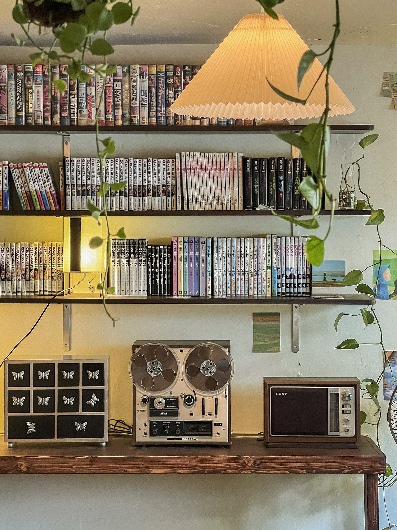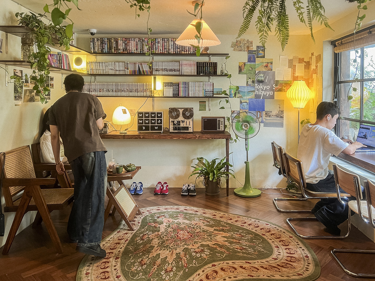 공간은 크게 세 개의 섹션으로 나뉘어 있다. 조도가 낮은 구석 자리는 연인이나 친구와 함께 앉아 진솔한 이야기를 나누기에 좋았고, 창이 있어 답답함을 덜어주었다. 창가 쪽에는 공부나 독서를 즐기는 사람들을 위한 바 테이블이 자리 잡고 있었고, 그 옆에는 만화책과 스테레오테이프 레코더가 놓여 있었다. 마치 누군가의 취향이 가득한 보물창고에 들어온 듯한 기분이었다. 맞은편 좌식 공간은 바닥에 앉으면 상대적으로 공간이 넓어 보여 개방감을 느낄 수 있는 구조였다. 공간을 구경하는 재미가 곳곳에 숨어 있는 가게였다.