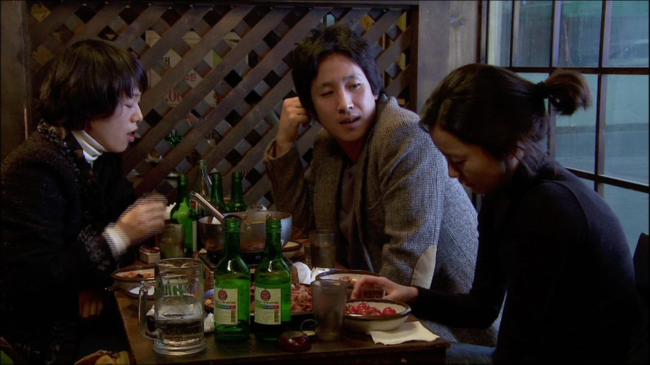오늘의 대사는 영화 <첩첩산중>의 어느 술 먹는 장면에서 나온다. 미숙(정유미), 명우(이선균), 진영(김진경)이 술을 마시고 있다. 여러 이유로 심기가 불편한 미숙은 소주를 연신 들이켜고, 진영은 참다못해 핀잔을 준다. '너 왜 이렇게 술 마셔?!'