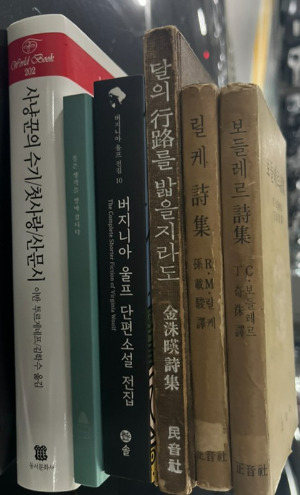 서점 안쪽으로 발걸음을 옮기자 나타난 작은 문 뒤에는 또 다른 비밀스러운 공간이 숨겨져 있었습니다. 작은 책꽂이에 꽂힌 빛바랜 고서들, 그리고 바닥에 깔린 매트를 보니, 이곳이 바로 주인장님의 깊은 사색과 책을 향한 애정이 고스란히 담긴 곳이라는 것을 직감했어요. 그곳에서 저는 누렇게 변색한 보들레르 시집, 릴케의 시집 같은 귀한 고서들을 발견했습니다. 1974년판 정음사, 값 400원이라는 글씨가 선명한 시집 두 권을 집어 들었을 때의 그 감동은, 단순히 물건을 고르는 것을 넘어 과거와의 아름다운 교감이었답니다.