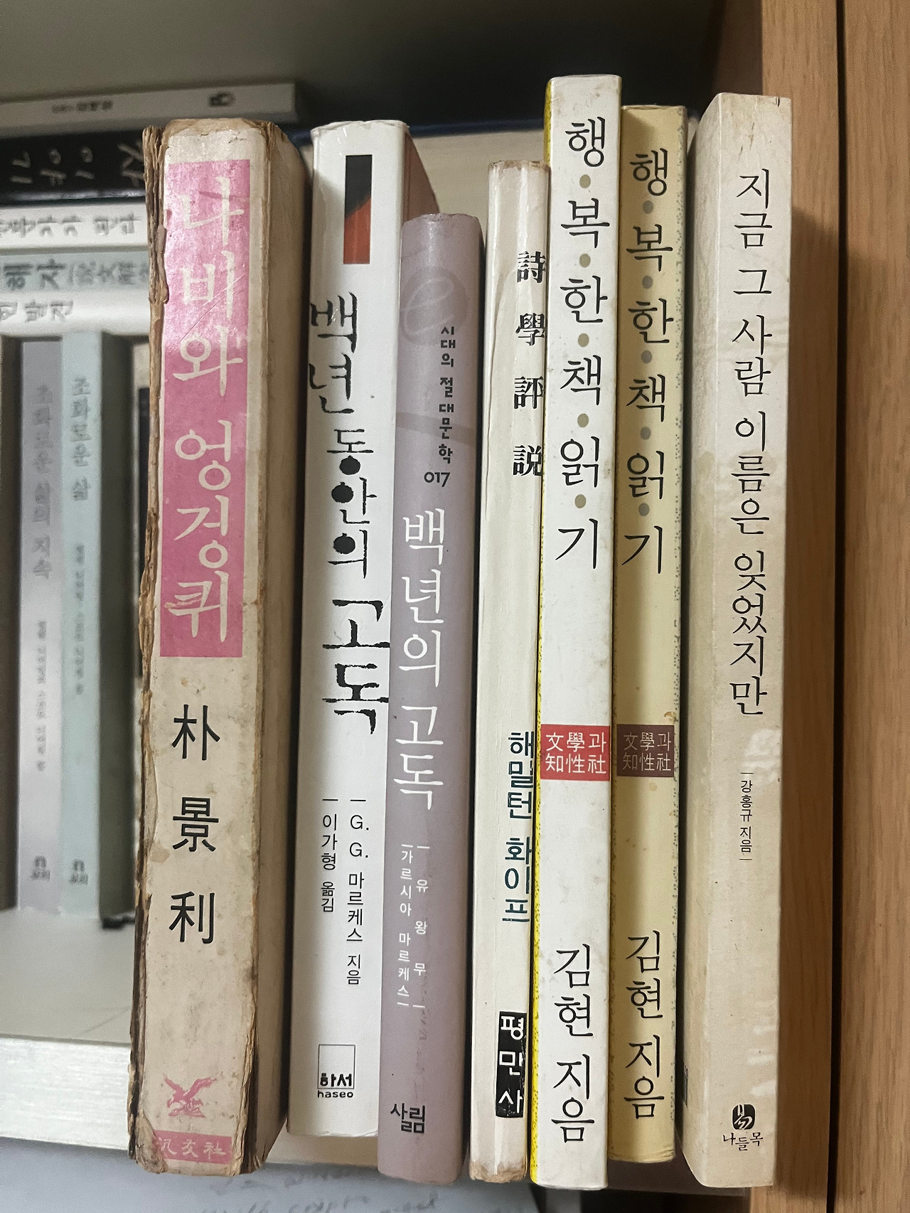 옛 추억을 잠시 뒤로한 채 2층으로 올라섰습니다. 그곳에서 국문학 비평의 거장이신 김현 선생의 『행복한 책 읽기』가 눈에 띄었습니다. 제 서재에도 1992년에 출간된 노랗게 바랜 초판본이 이미 있지만, 이곳의 책은 2007년에 간행된 23쇄본으로, 표지는 노란색에 내지는 하얗게 인쇄된 양질의 책이라 관심이 생겼습니다. 새로운 이 책을 구매하여 다시 읽어보기로 마음먹었습니다. 기존의 초판본은 너무 낡아 릴케의 <두이노의 비가> 시구처럼 '한 천사가 나를 가슴에 껴안는다면, 나는 사라지고 말 것이다'라고 읊조릴 정도로 바스러질 지경이었기에, 소중한 보존용으로 간직해야겠다고 생각했습니다.