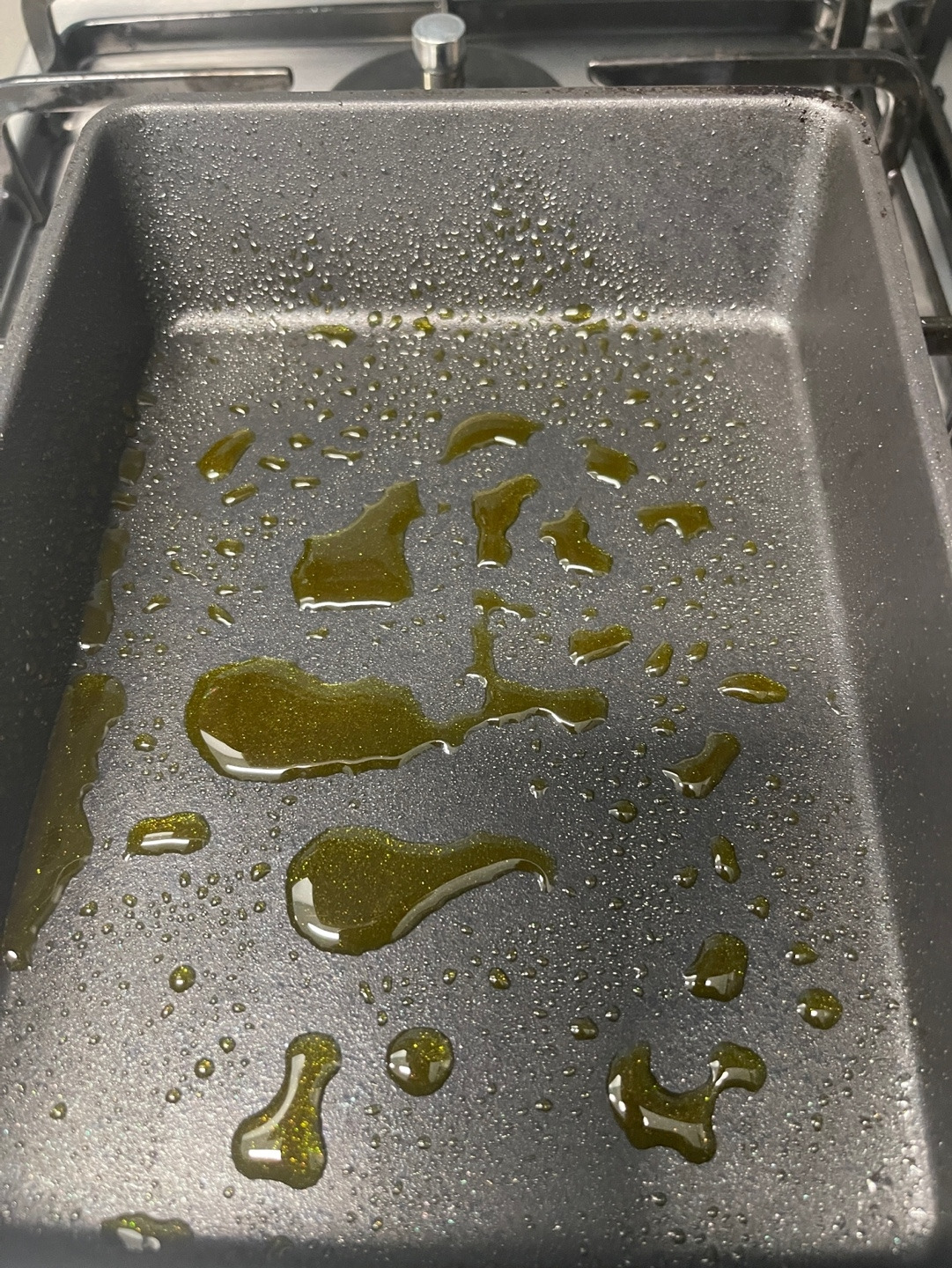 달궈진 팬에 올리브오일을 넉넉하게 두른다.
