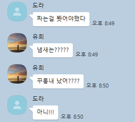 조용하던 단톡방이 갑자기 부산하다. 걱정 섞인 말들이 오간다. 그중 가장 팩트는 "냄새는? 꾸룽내 났어?"