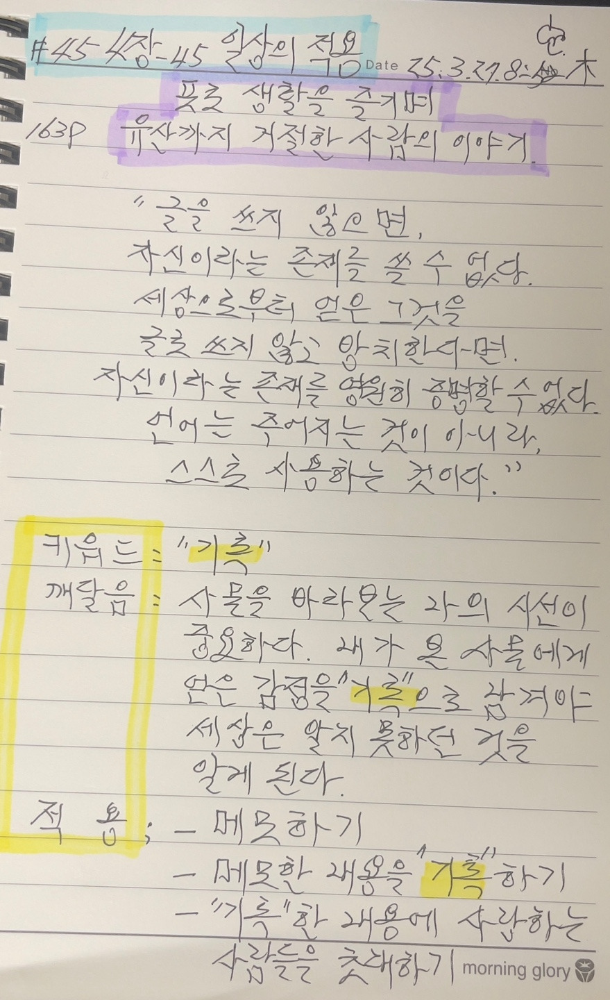메모하는 습관은 우리의 감정과 생각을 보존하는 마법의 도구다. 스마트폰 시대에 손끝으로 기록하는 순간, 우리는 찰나의 감정을 영원히 붙잡을 수 있다. 김종원 작가의 말처럼, 글쓰기는 내 세계에 사랑하는 이들을 초대하는 행위다.