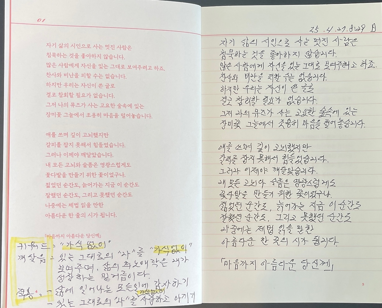 필사 #1, 프롤로그, 시가 꽃으로 피어난 순간