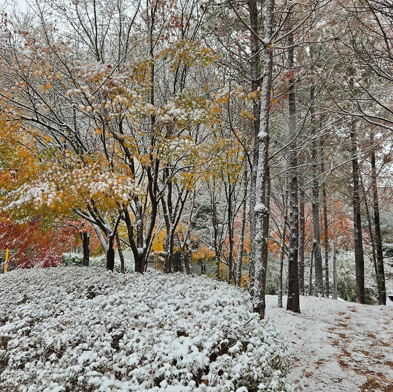 떨어진 낙엽 위로 눈이 쌓이기 전에 남편이랑 집 뒤에 있는 관무산 다녀왔어요. 가깝고 전망이 좋아 첫째로 꼽는 저의 아지트예요ㅎ 사각사각 낙엽 밟는 소리가 듣고 싶었습니다. 김밥이랑 따끈한 보리차가 산 정상에서 먹으니 어찌나 맛있던지요.
