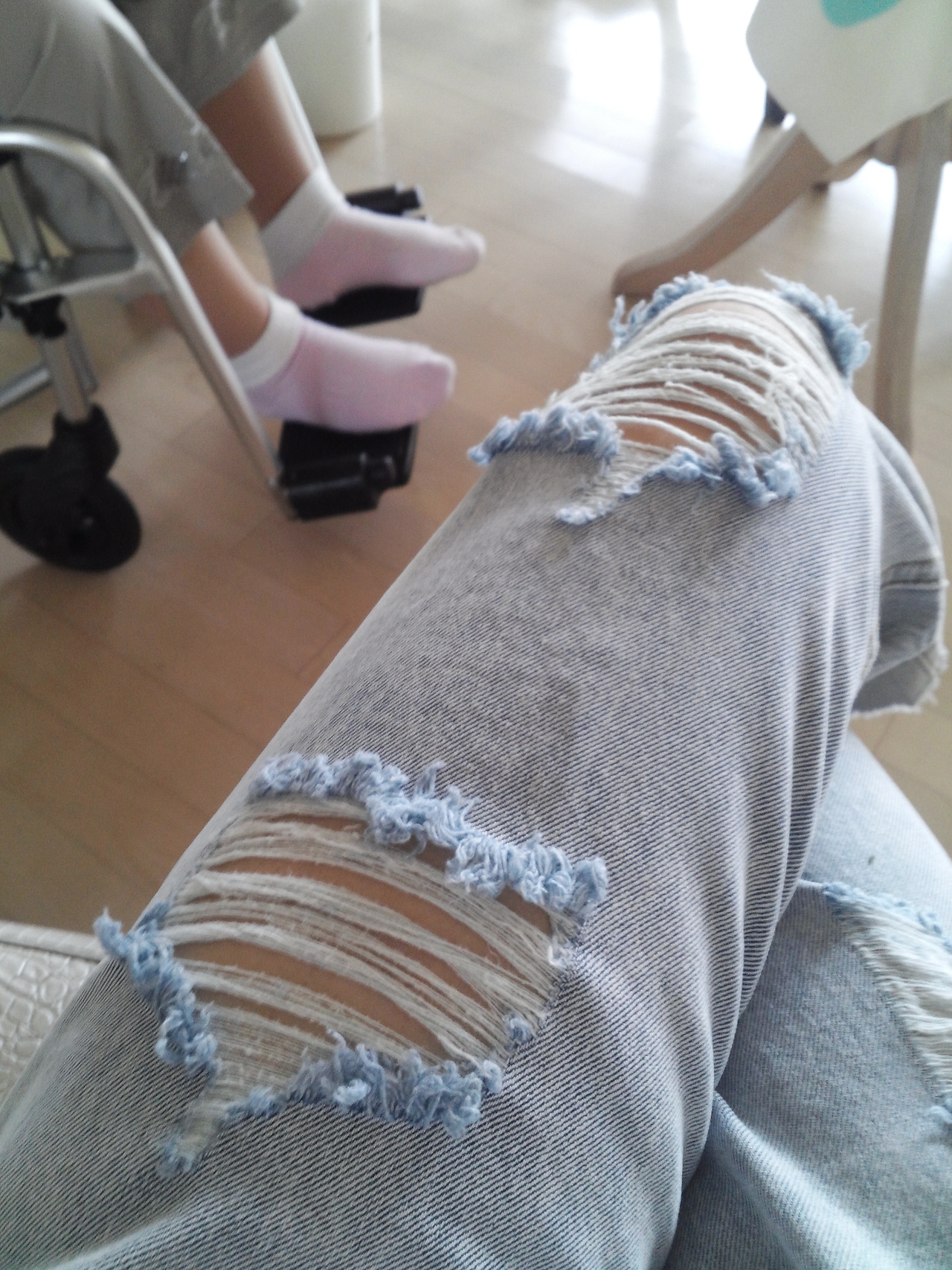 " 아니 바지는 왜 다 떨어진 걸 입고 다녀?"