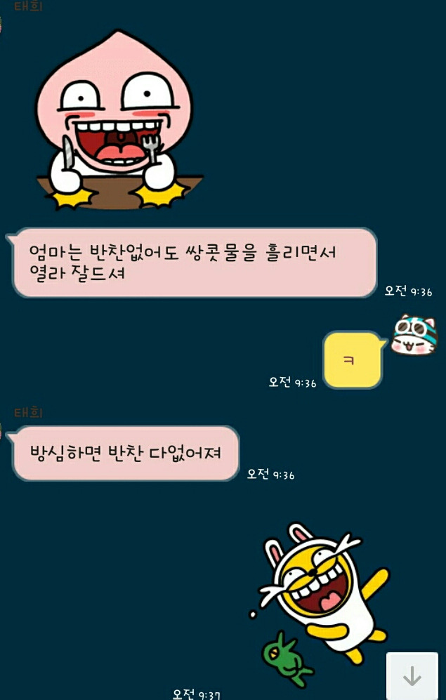 "엄마는 반찬없어도 쌍콧물을 흘리면서 열라 잘드셔"