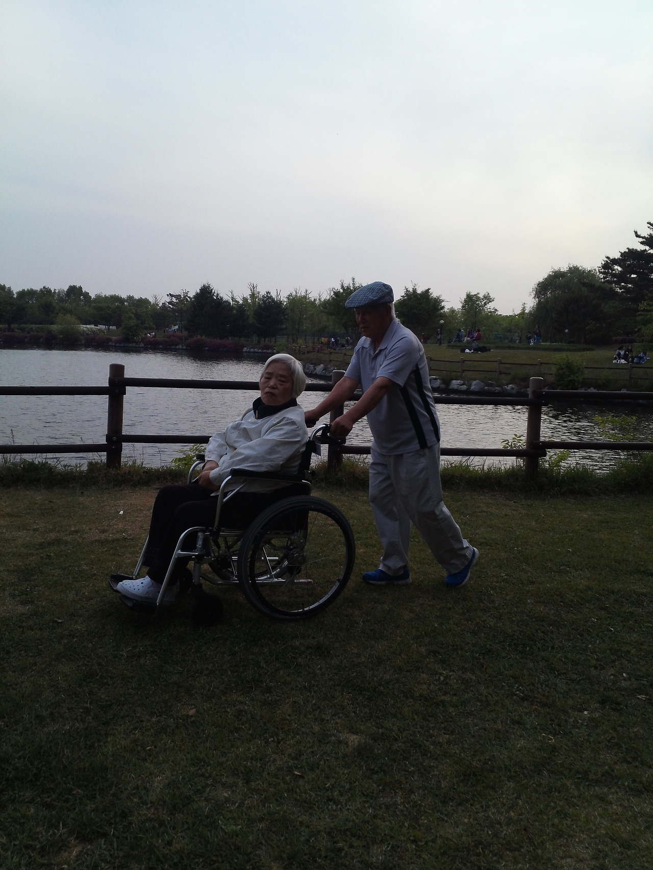 멀리 다정히 휠체어를 밀어주시며 공원을 산책하시는 노부부 한 쌍이 눈에 들어왔어요.