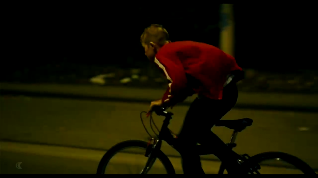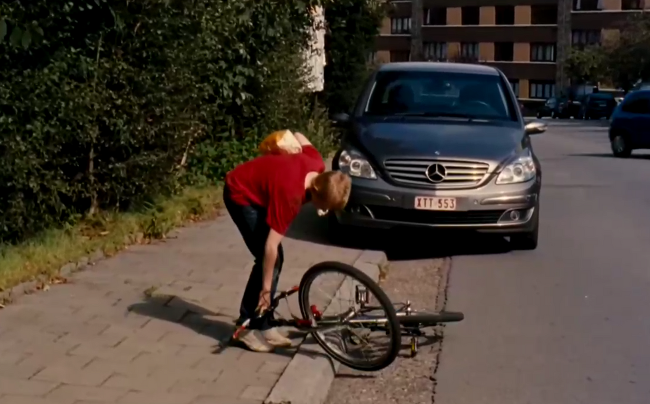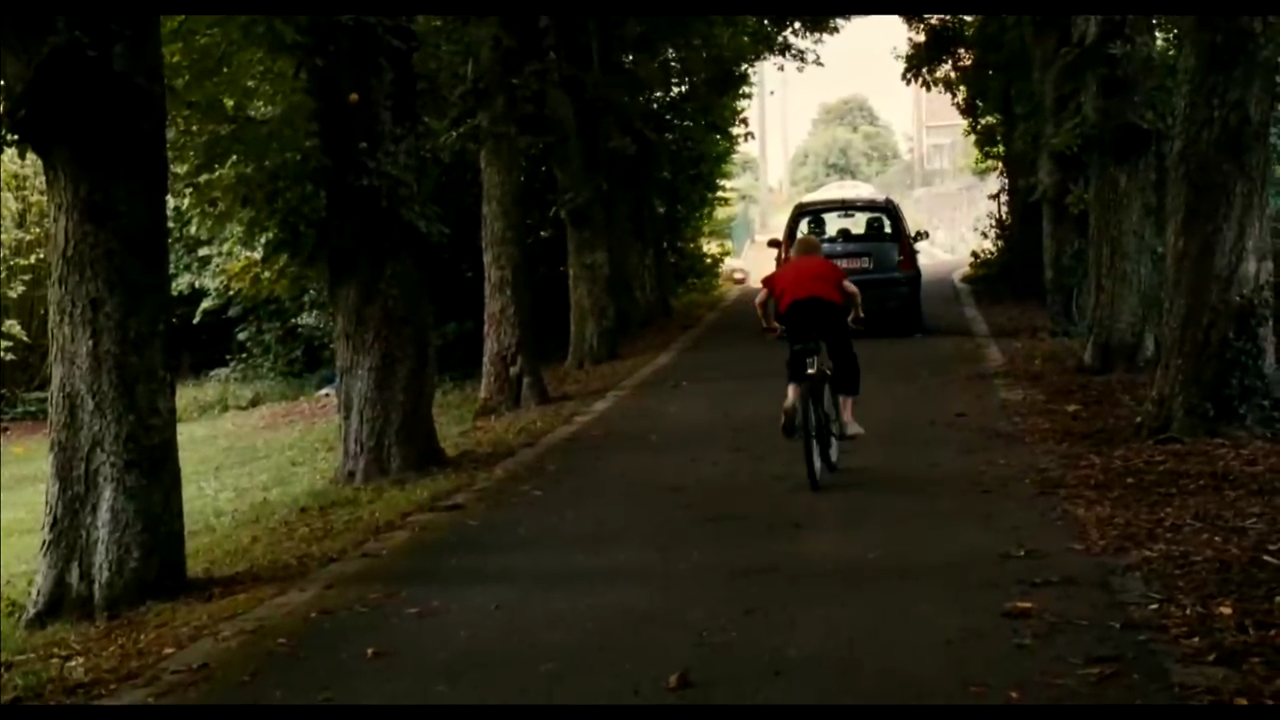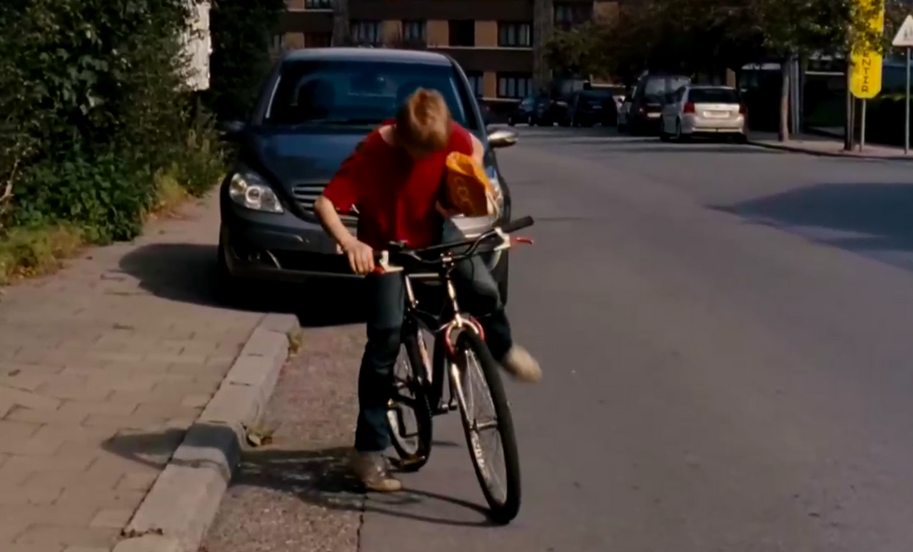 범행에 연루되어 피해자에게 쫒기던 시릴이 도망치며 오른 나무에서 떨어져 몸도 마음도 만신창이가 된채로 쓸어진 자전거를 세워 타고 유유히 사라진다.