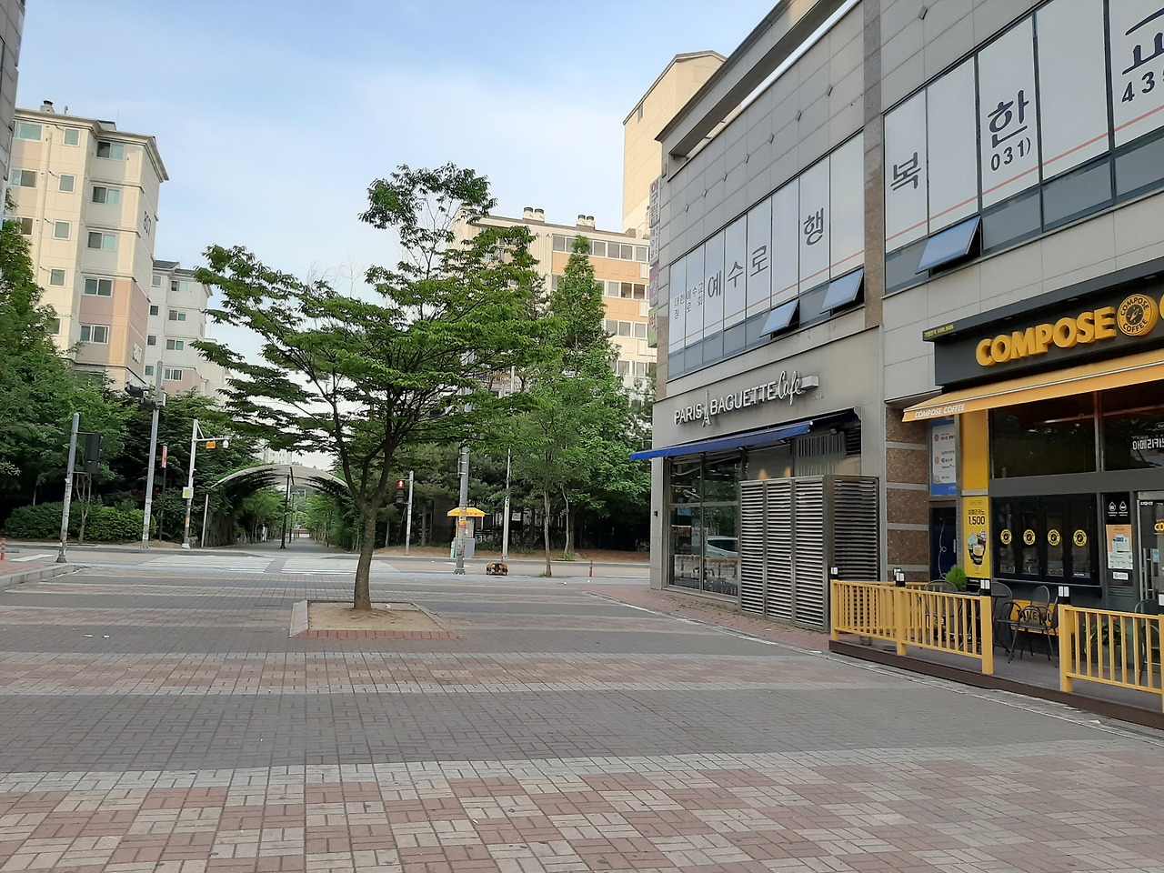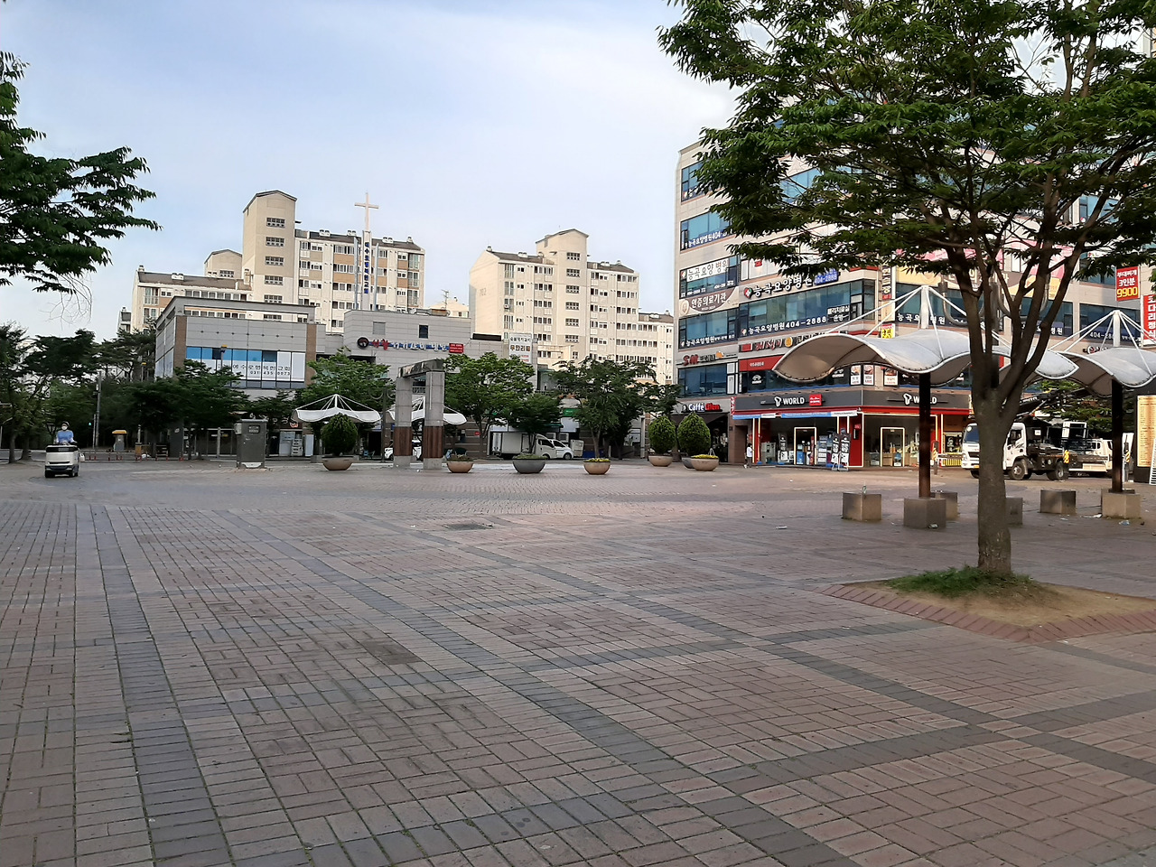 중심상가가 있는 중앙광장과 건너편 중앙공원