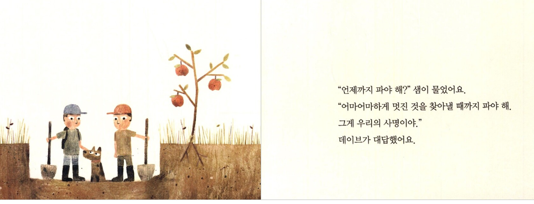 샘과 데이브는 서로 어떤 관계인지, 어떤 이유로 땅을 파는지 그림책은 말하지 않는다.