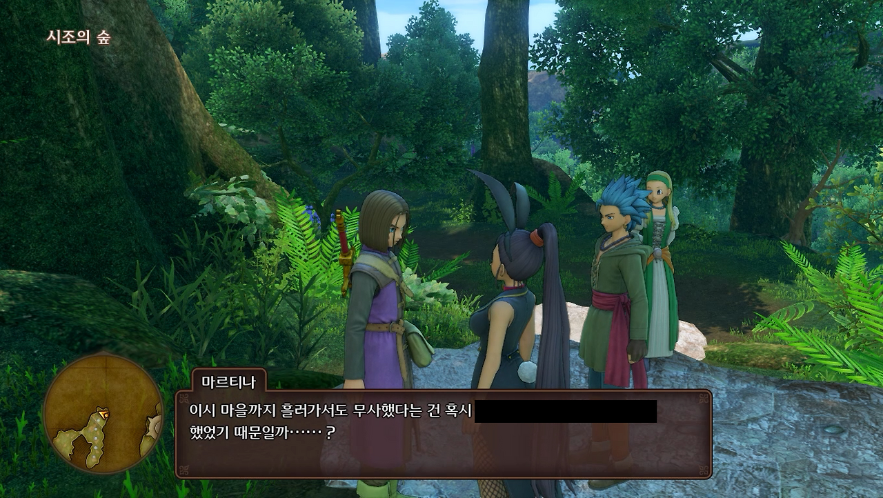 JRPG에서 캐릭터가 중요한 만큼 인물에게 빠져들 만한 요소를 스토리에만 넣어두진 않았습니다. [드퀘11]에선 7명 중 4명을 파티원으로 구성해서 전투를 할 수 있습니다. 처음부터 플레이할 수 있는 주인공은 올라운더, 나머지는 어느 정도 역할이 있지만 스킬이나 무기를 공유하기도 합니다. 서로의 영역을 침범한다는 뜻이 아닙니다. 게임 진행에 지장이 안 가는 선에서, 어떻게든 유저가 좋아하는 캐릭터를 쓸 수 있게끔 배려한다고 느껴집니다. 도적 특화, 힐러 특화, 보스 전용 등 간섭 못할 역할도 분명 지켜주고 있습니다. 그리고 동료에게 말을 걸어서 최근 사건에 대한 그들의 견해를 직접 들을 수 있습니다. 파티원끼리 돌아다니거나 캠프파이어를 할 때, 혹은 메뉴를 통해 가능합니다. 내용도 짧고 큰 의미가 없는 대화도 많습니다. 하지만 그것만으로도 동료가 그저 나를 따라오기만 하는 존재가 아니라 교감하는 인물로 다가올 수 있습니다.