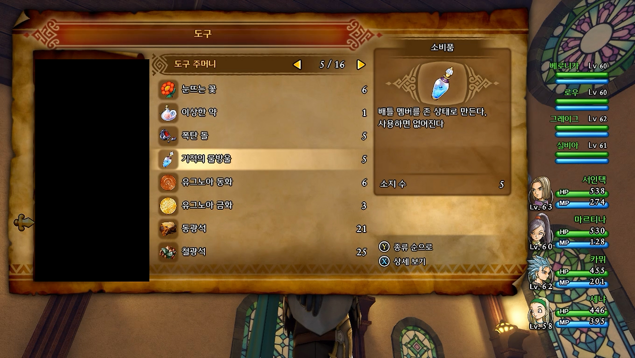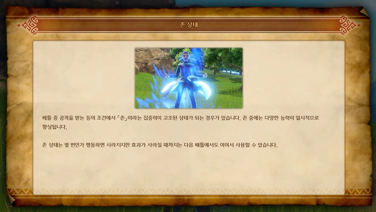 하지만 아쉽게도 JRPG 특유의 불편한 점은 몇 개 남아있었습니다. 일단 고전 턴제 전투처럼 적 체력을 보여주지 않습니다. [몬스터 헌터]는 긴장감을 유지하기 위해 표시하지 않았다고 쳐도, [드퀘11]의 전투에선 마나 등의 자원을 소비하기 때문에 더 답답합니다. 자동 전투일 때는 AI가 알아서 적의 체력을 계산하고 적당히 공격해서 다행이지만, 언제나 좋은 행동을 하는 것도 아니라서 결국 후반부부터 유저가 직접 조작하곤 합니다. 추가로 아쉬웠던 건 존 시스템입니다. 능력치를 몇 턴 동안 상승시켜주는 것인데, 연계 기술로 이어갈 수 있을 정도로 중요한 시스템이지만 랜덤 발동입니다. 유저가 발동시키려면 아이템이나 스킬을 사용해야 하며, 그건 개발자가 단점을 인지하고 있음에도 근본적인 해결을 하지 않았다는 뜻이고, 기술적 한계 때문에 변수를 확률로 창출하던 옛날 방식을 고집하는 것처럼 보입니다. 마지막으로 특히 극 후반대에 갑자기 난이도가 올라가서 장비나 레벨 노가다를 심하게 요구하는 것도 JRPG 특유의 단점을 그대로 답습합니다. 현재 Definitive Edition이 추가되면서 편의성이 좋아졌지만 아직도 개선의 여지는 남아있습니다.