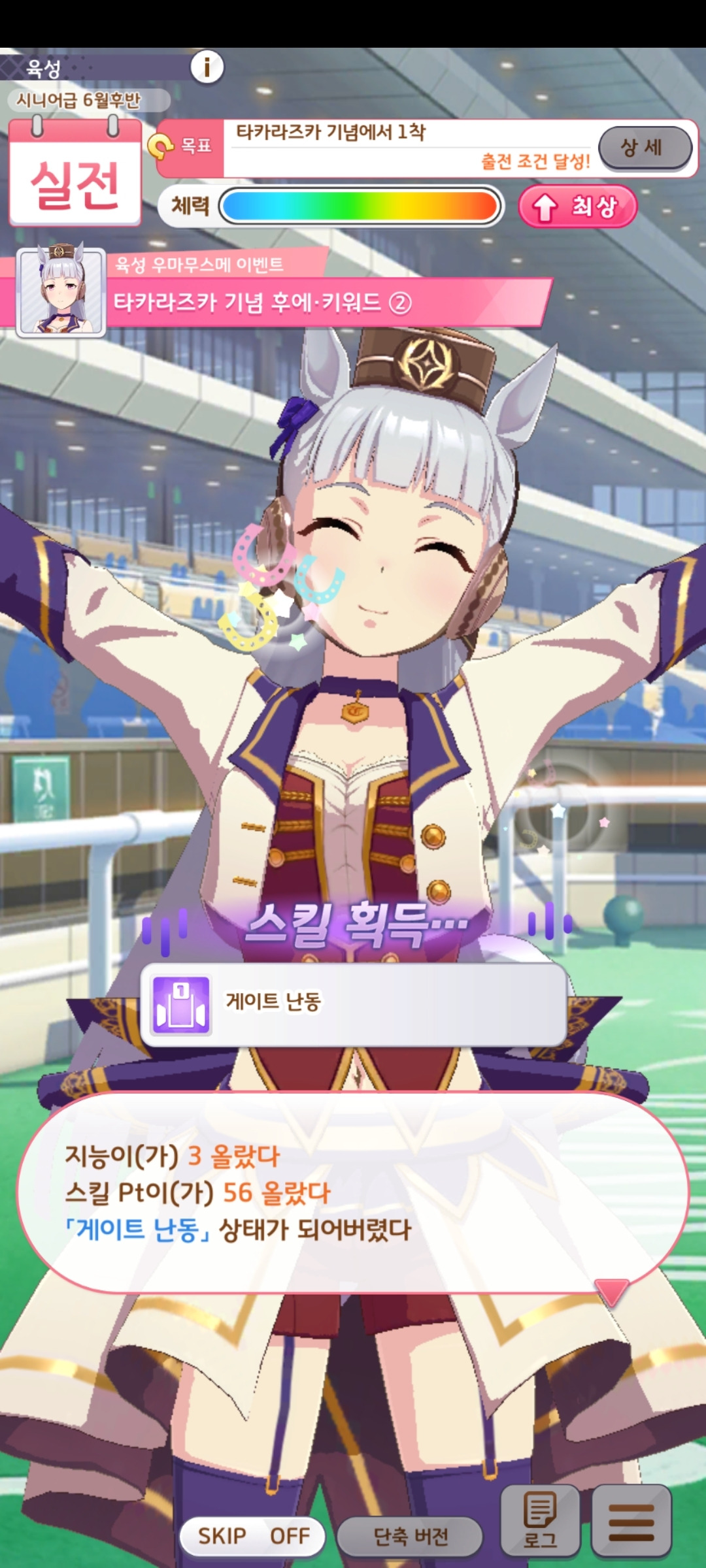 물론 이 게임의 매력이 설정에만 있지 않습니다. [우마무스메]는 1턴에 이벤트가 1~3개 정도 발생할 정도로 변수가 자주 발생하는 게임입니다. 운이 없다면 이 문제를 해결하기 위해 1턴을 희생해야 하며, 최대 효율을 위해 게임 이해도를 계속 높여야 합니다. 그리고 초반엔 스탯 상승량이 적지만 빌드업을 잘해두면 능력치 상승 폭을 올릴 수 있습니다. 그래서 후반으로 갈수록 어려워지는 레이스 난이도를 전략으로 따라잡는 것이 가능합니다. 캐릭터마다 공략이 정답처럼 거의 정해져 있지만, 선택과 작전이 게임 진행에 큰 영향을 미칩니다. 길게 말했지만 결국 육성 시뮬레이션의 기본이 되어있다는 뜻입니다. 게임성 자체만 놓고 본다면 몰입감을 해치지 않을 정도로 합리적이어서 괜찮습니다. 그만큼 게임성이 받쳐주기 때문에 유저는 자기가 키우는 누군가에게 몰입하기 쉬워집니다. 만약 단순히 캐릭터의 애정만 주입하고 재미가 없는 게임이었다면 이렇게까지 큰 인기를 얻지 못했을 겁니다.