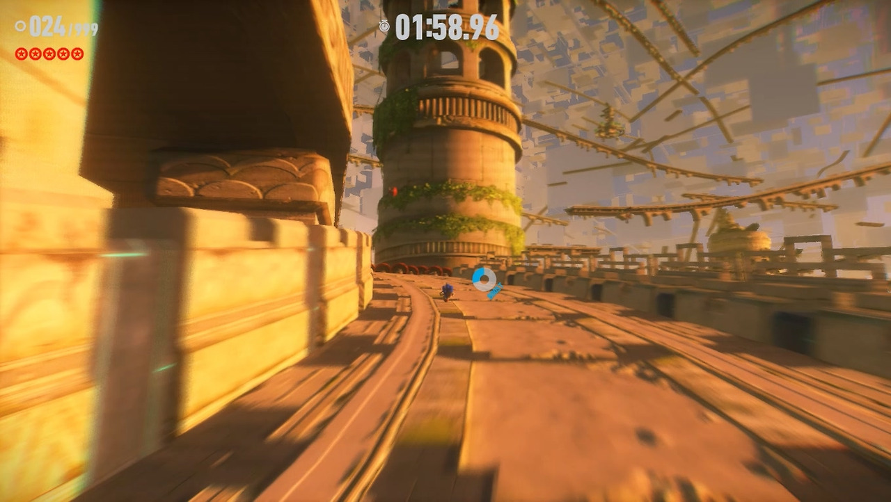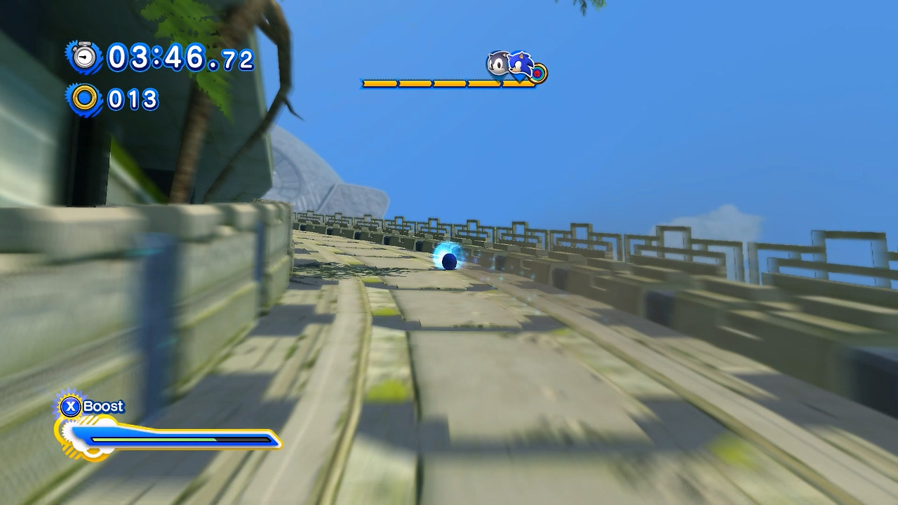 사실 소닉에게 속도감이란 가장 큰 특징인 동시에 양날의 검이기도 합니다. 속도를 아무리 빨라도 유저는 이에 적응할 수 있으며, 나중에는 조작을 감각적으로 하는 지경까지 이릅니다. 그렇다고 너무 속도를 높이면 주인공을 다루기 너무 어려워집니다. 그래서 개발진은 적절한 속도감을 찾은 뒤 유저가 이에 되도록 늦게 적응하도록 해야 합니다.