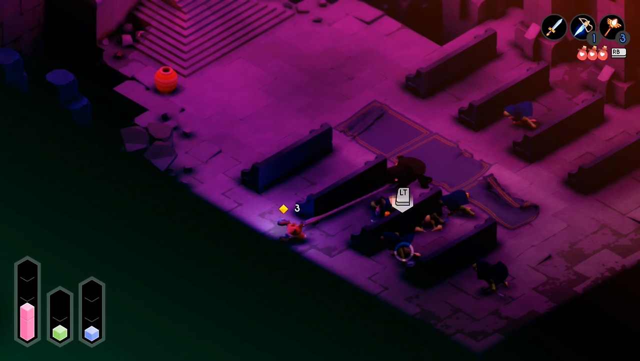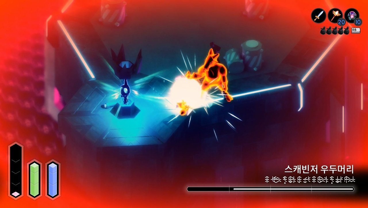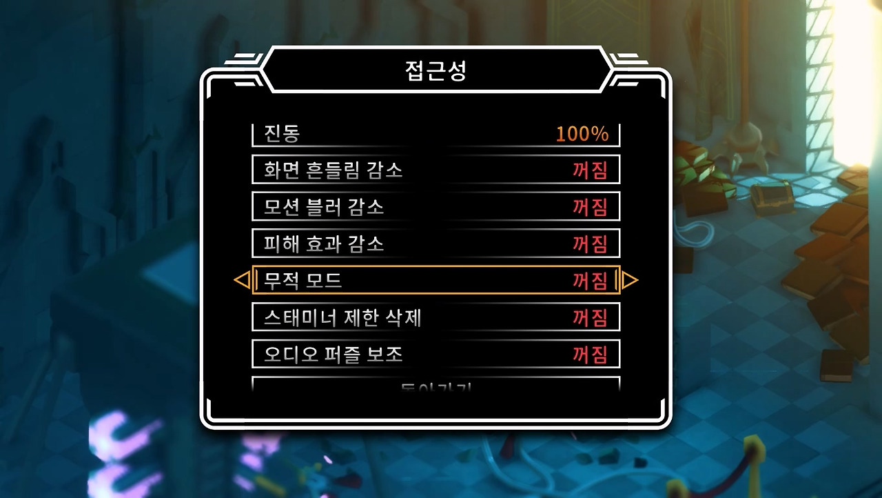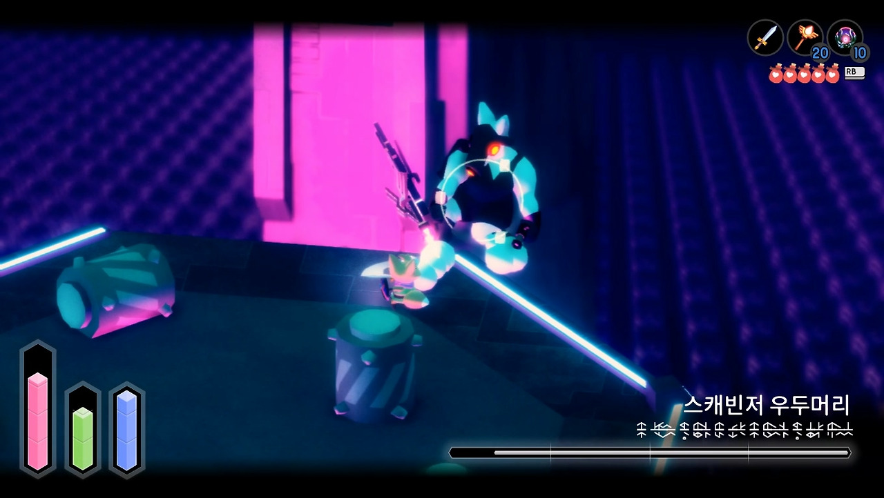필자의 실력 문제일 수도 있지만, 개인적으로 공략했을 때의 희열이 느끼기 힘들었습니다. 합을 주고받듯 주인공과 상대방의 호흡이 맞아떨어지지도 않고, 정답을 찾아내기보다 오답을 피하는 데 급급한 전투였습니다. 고전 게임 중 난이도 높은 작품이 많아서 이 정도로 어렵게 만들었나 싶기도 합니다. 하지만 전투와 길 찾기 둘 다 험난하다보니 후반으로 갈수록 스트레스를 풀 구간이 적어져서 피로감이 심해집니다. [튜닉]은 옵션으로 스테미나 무한 모드나 무적 모드를 켤 수 있으니 스트레스를 스스로 조절하시는 게 좋을 것 같습니다.