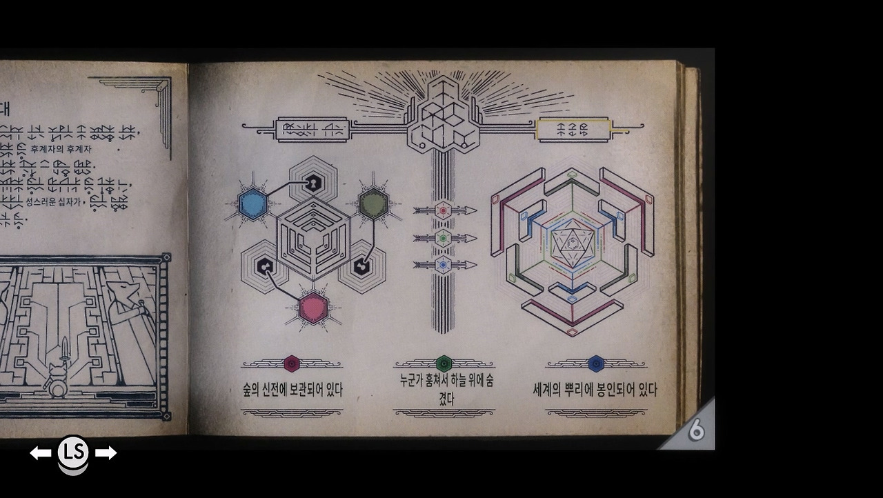 [튜닉]도 초반엔 아무것도 가르쳐주지 않습니다. 방향키만 사용해서 움직이다 보면 외계어로 가득한 매뉴얼을 한 장씩 얻을 수 있고, 그나마 몇몇 단어와 그림으로 조작법이나 나아갈 방향을 알 수 있습니다. 인간의 성향과 눈치에 많이 의존하는 고전 게임 특징이 여기서 드러나는 겁니다.