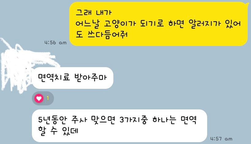 너도 그런 모양으로 나를 사랑하고 있다는걸 확인하고 싶었기도 했어. 너와 나만 해석할 수 있는 방식의 사랑 말이야. 오늘은 용기내어 물었어. 모든걸 가볍게 흩어버리지 않도록 최대한 얕은 숨결로. 너의 대답은 사랑이구나. 좋아.