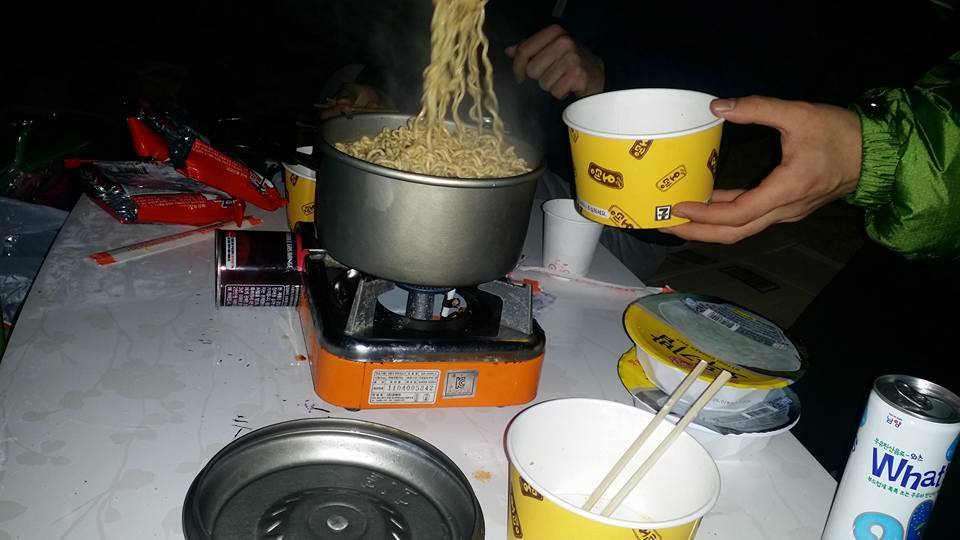 우리는 유섭이가 가져온 코펠에 라면을 끓여먹었다. 1월 1일 밤바다를 바라보며 친구들과 라면을 먹고 있자니 처량하기도 하고 재밌기도 한 감정이 짙게 깔린 바다내음처럼 다가와 실실 웃었다.
