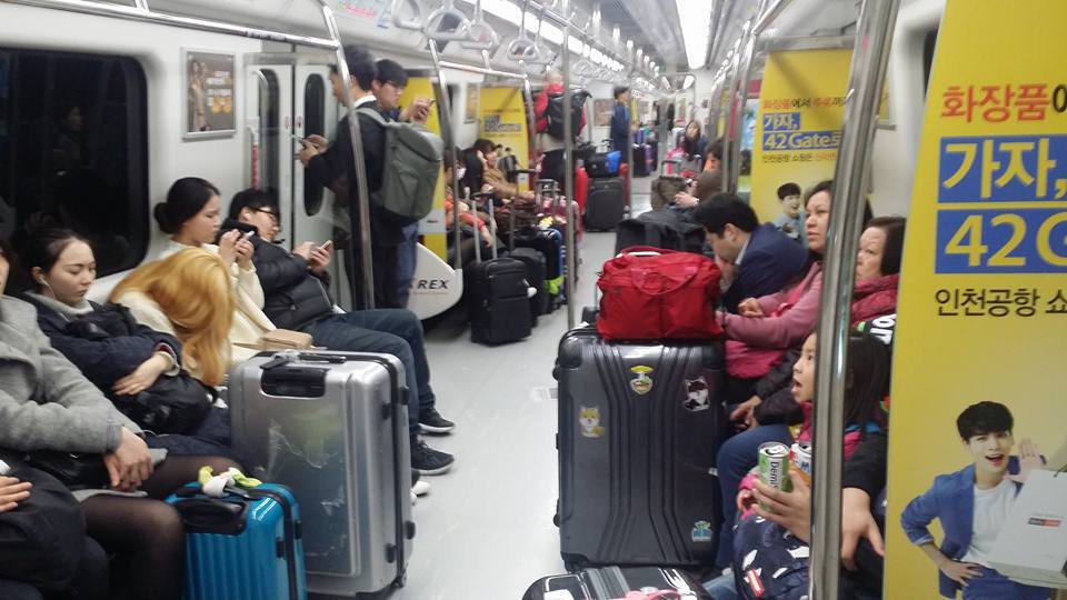 새벽 한 시가 되기 전, 여행에 커뮤니티에서 만난 사람들을 만나러 공항철도를 탔다. 텅텅 비어있을 줄 알았던 공항철도에는 사람들이 가득 차있었다.