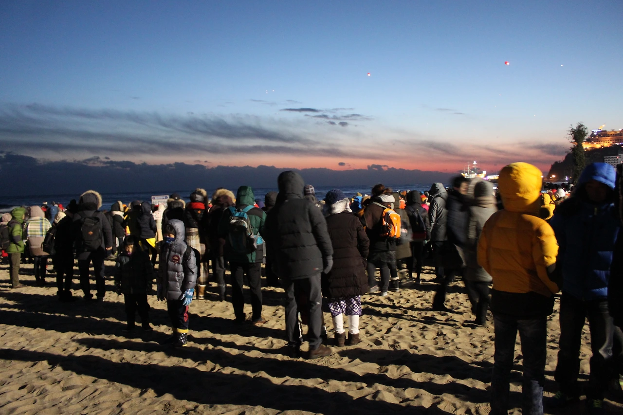 <해돋이를 구경하는 사람, 새해 소망을 담아 풍등을 날리는 사람, 여행 자금을 모으기 위해 함께 한 친구들>