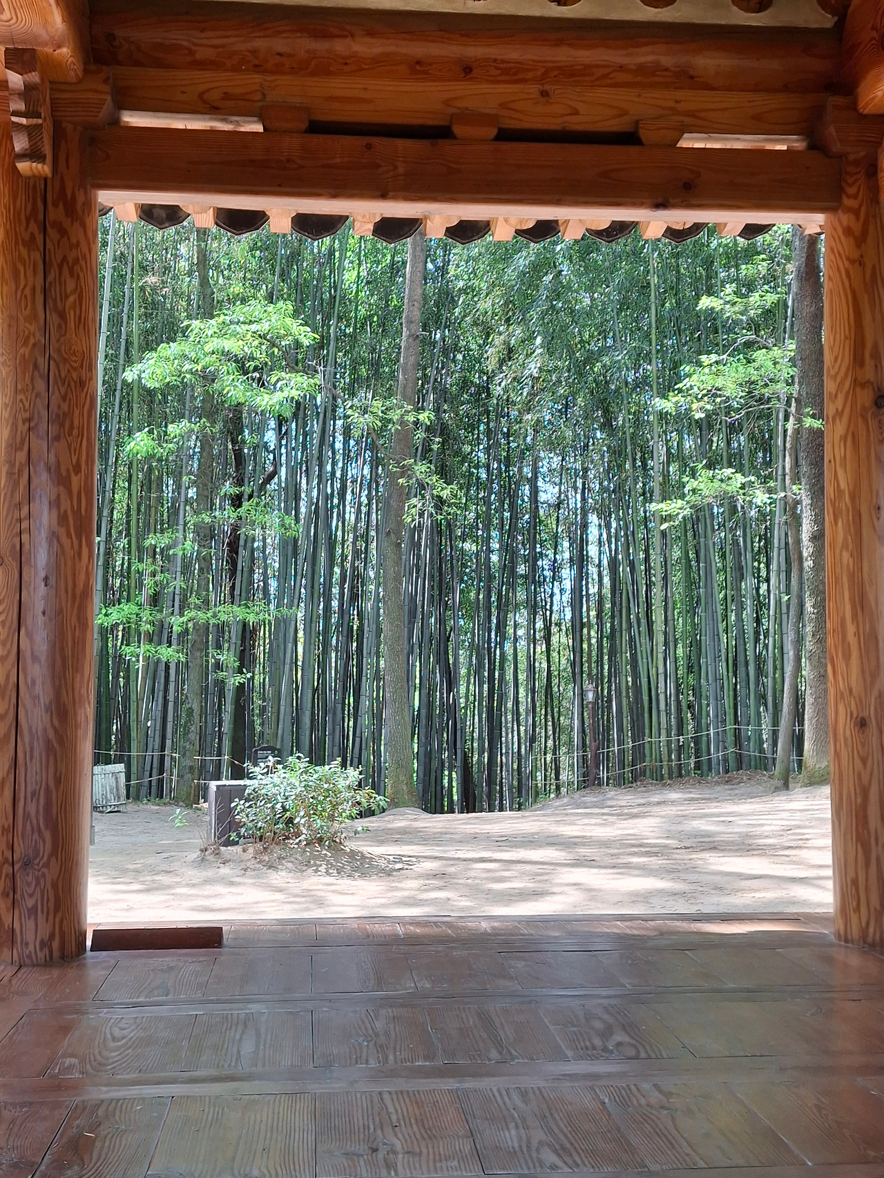 정자 기둥과 기둥 사이 네모난 공간으로 굵은 대나무들이 빽빽하게 들어찬 모습을 바라보며 진한 녹색 잎이 뿜어내는 자연의 성찬을 즐기고 있었다.