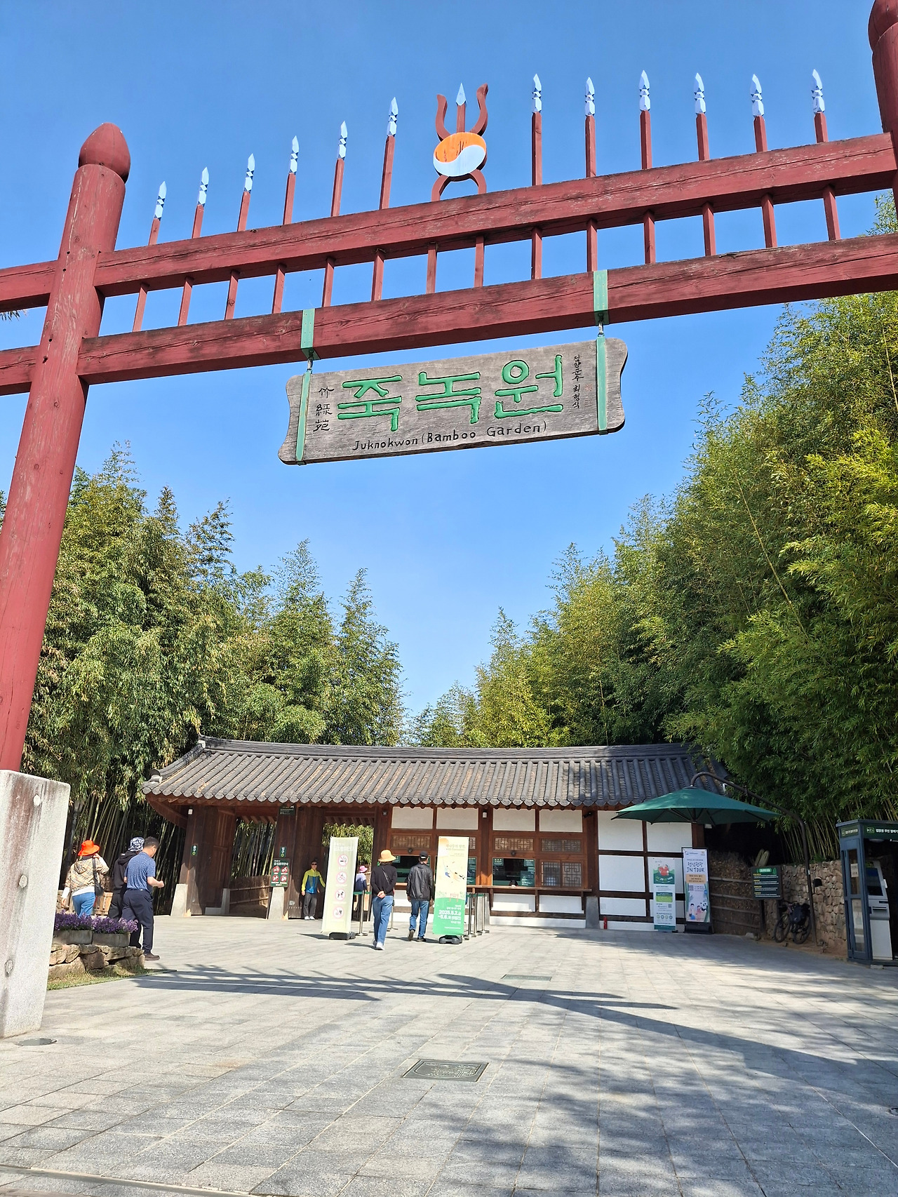 홍살문을 지나 싱그러운 대나무가 빼곡하게 펼쳐진 죽녹원 안마당에 들어갔다. 두 번째 방문임에도 첫 방문 때의 감흥이 되살아났다. 봉황루라 이름 붙여진 카페에 들어가 아내는 대나무 향이 나는 아이스크림을, 난 커피 한 잔을 마시며 테라스 너머로 펼쳐진 죽녹원 앞마당 전경을 음미하였다.