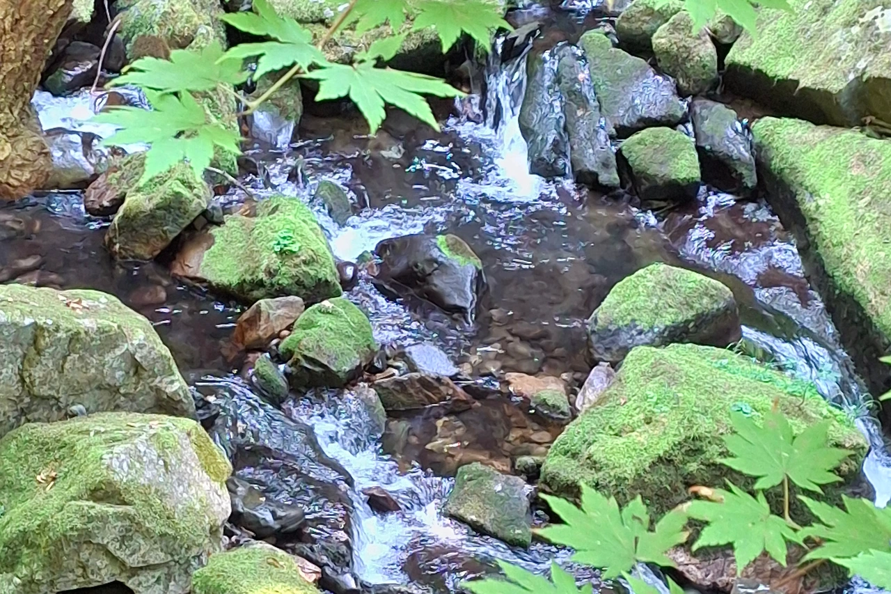몇 분이 옷 입은 채로 계곡물에 몸을 담근다. 이어 다른 분도 동참하고 많은 분이 동심으로 돌아가 계곡에 몸을 맡긴다. 난 얼굴과 어깨를 씻고 발목까지 물속에 담갔다. 땀이 쑥 들어간다. 더위가 가시면서 발가락이 서늘하다.
