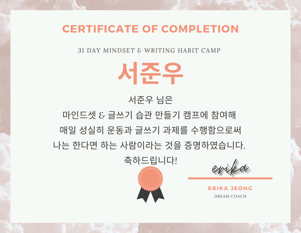 마인드셋 & 글쓰기 습관 만들기 캠프 수료증