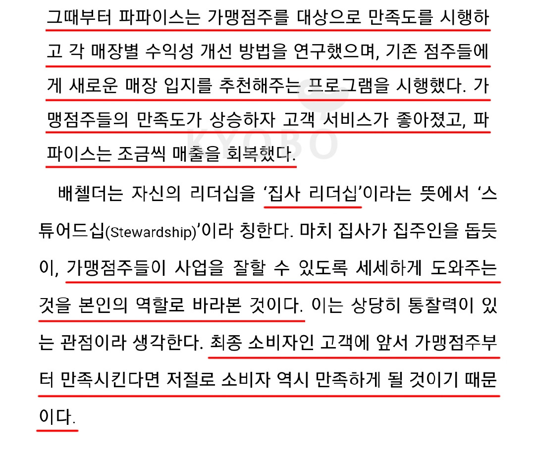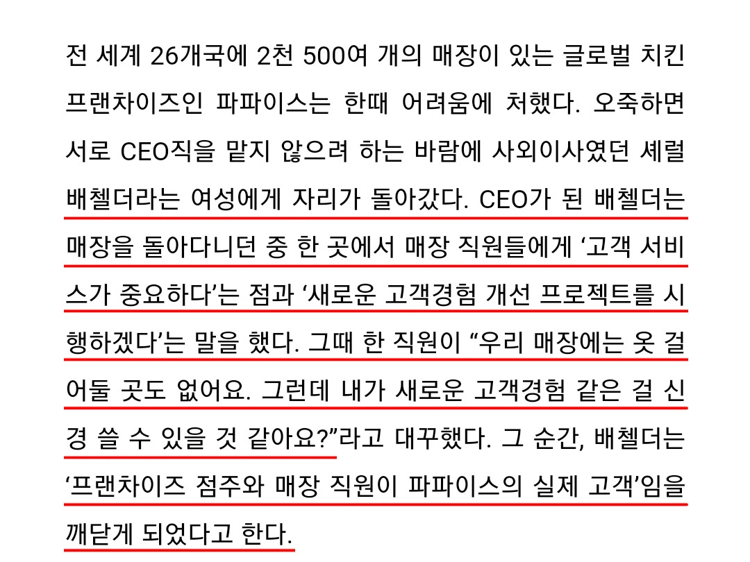 파파이스 CEO는 이 의견에 동의했고 입점하는 점주와 직원들 또한 그들의 고객이라는 것을 깨닫고 매장에서 직원들의 의견을 수용해 반영하기 시작했다.