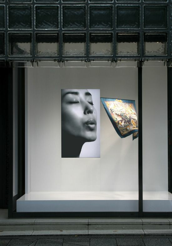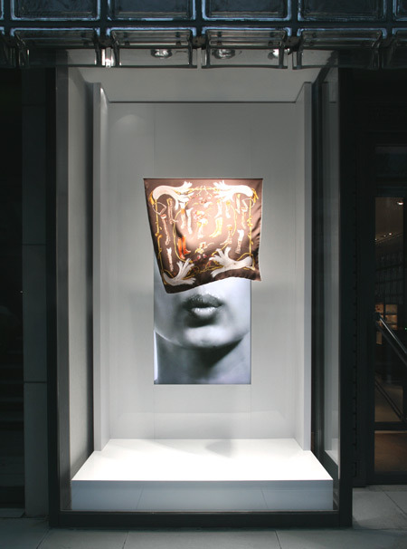 에르메스의 윈도우 내부에 상품이라고는 단 한 장의 스카프만 걸려있다.