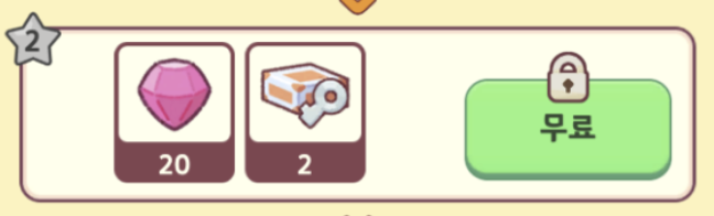 레벨이 오르면 해당하는 레벨의 보상을 획득할 수 있다. 위 이미지를 기반으로 설명하자면, 2레벨이 되면 무료 버튼 자물쇠가 해제되고 무료로 왼쪽의 아이템을 획득할 수 있다는 것이다.